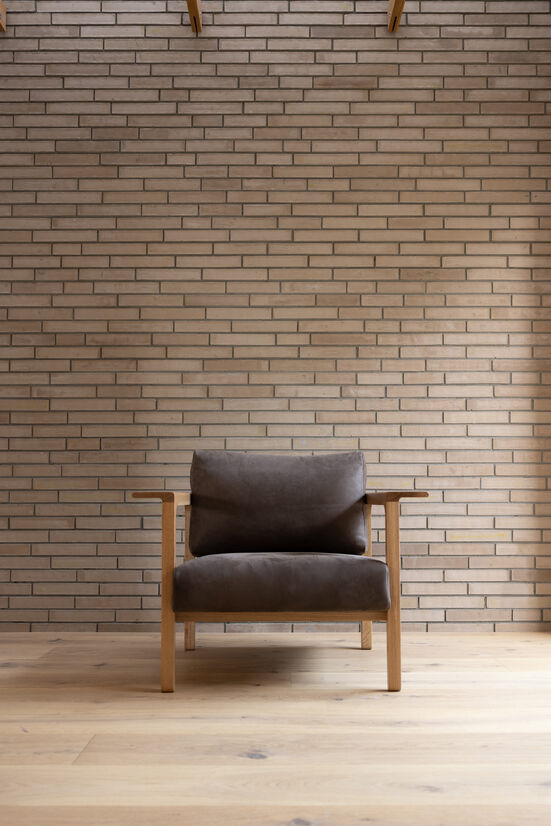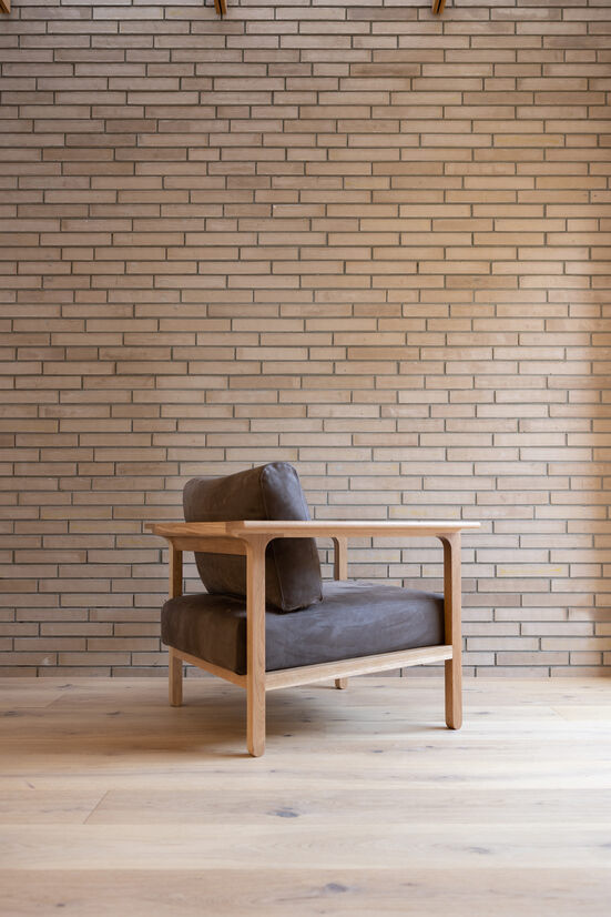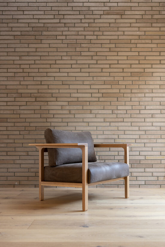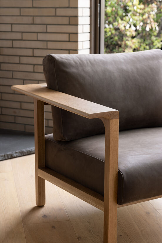 The Upholstery has a generous fixed seat with a loose back cushion with feather/fibre fill. The materiality and combinations of the Soft leather upholstery and rich American Oak frame further highlight the quality of the overall result.