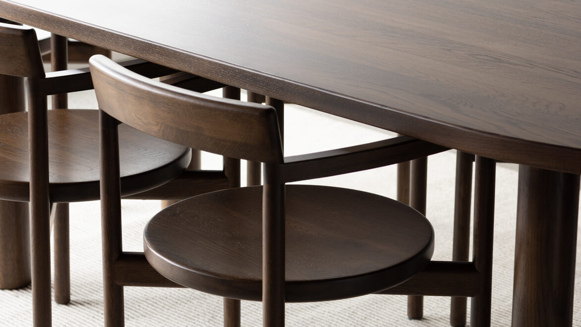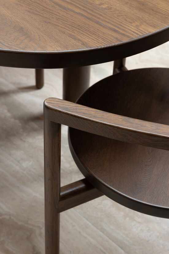 The concept began as a linear silhouette with round geometries and softened edges introduced where one may touch the chair. It was important to introduce a softness to mitigate both the natural hardness of the timber and the faintly over proportioned thickness of the legs. The proportions of the material convey a strength and robust nature without having a heavyset presence.