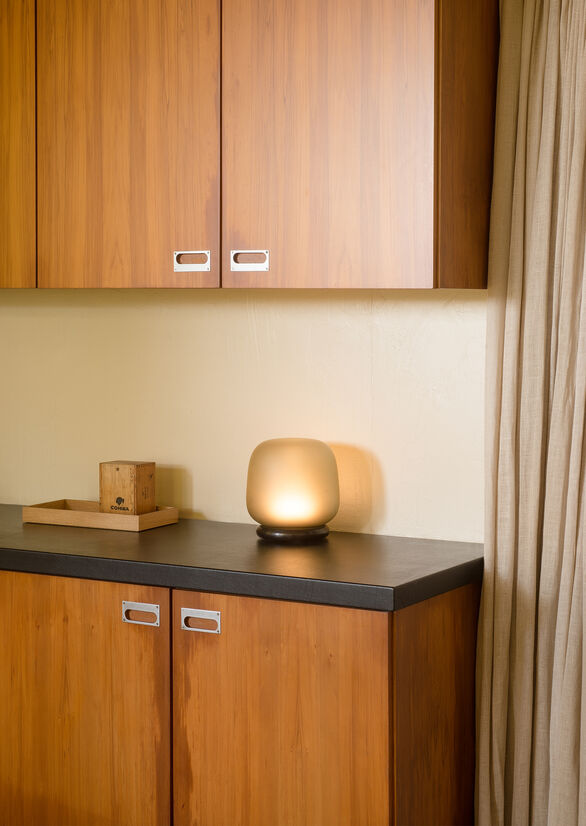The natural qualities of stone and glass were also key elements in developing the user experience—we wanted something akin to feeling relaxed and calm around a campfire. The LED light source is set low into the stone base creating a warm, diffused light. This is a nod to our natural human tendencies to seek warmth and comfort.