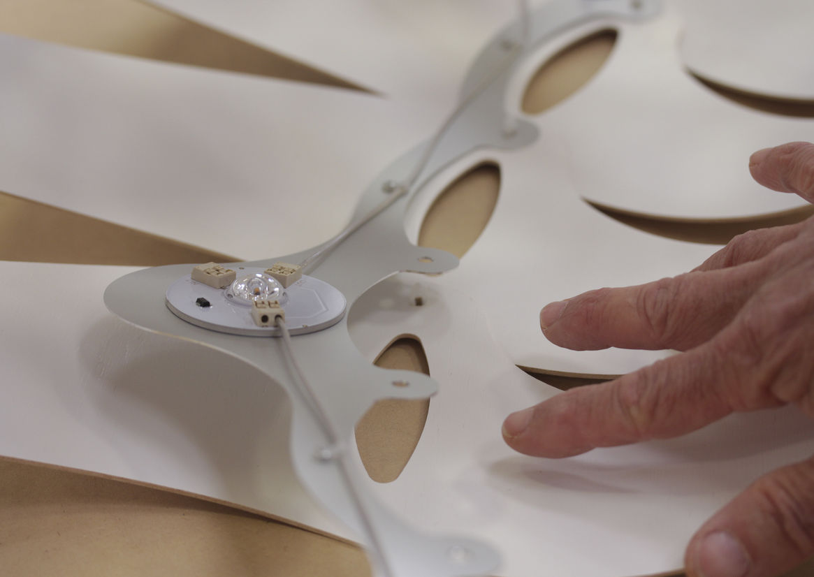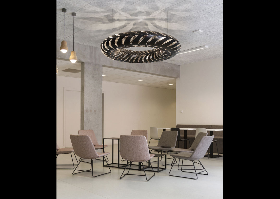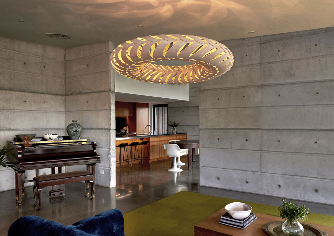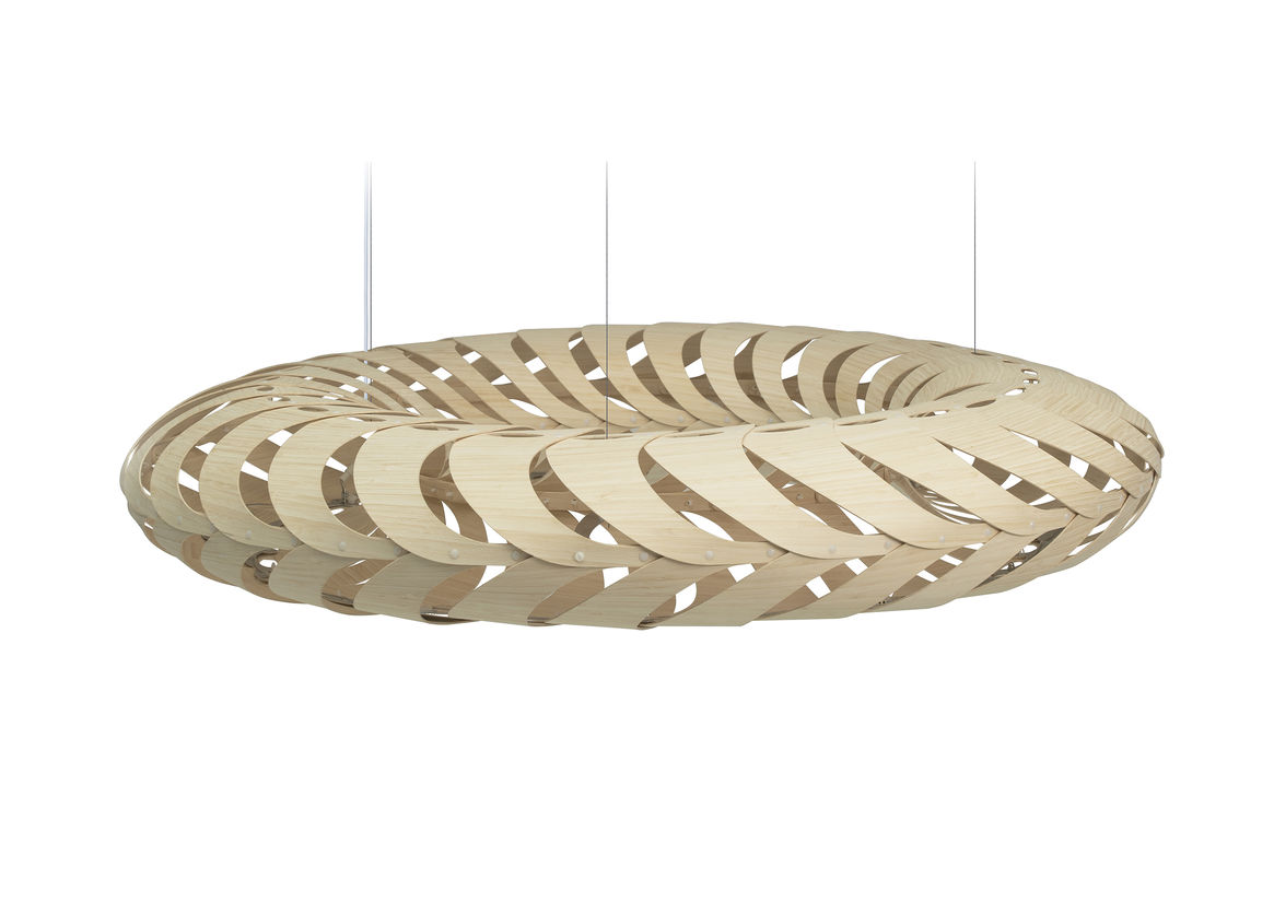 The Maru light’s torus form, with a pattern of vesical piscis-like shapes cut into its surface, shines a wonderfully kaleidoscopic pattern of light and foreshadows another impressively innovative pendant from the Knight of Light.