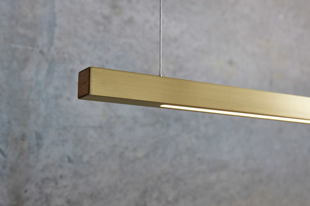 It is important to us that the lights are hand made according to the client's preferences - we customise the finish of the brass, the length, the wood finish for the ends and the length of the suspension wires so that the light fits perfectly in the client's chosen space and is unique to them.