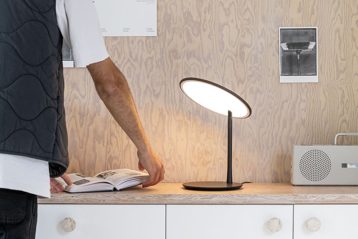 Recognising the shift in modern work habits, where softer ambient light is preferred over focused task lighting, the Disc light was designed to provide an even, broad glow ideal for reading, sketching, or working near a screen.