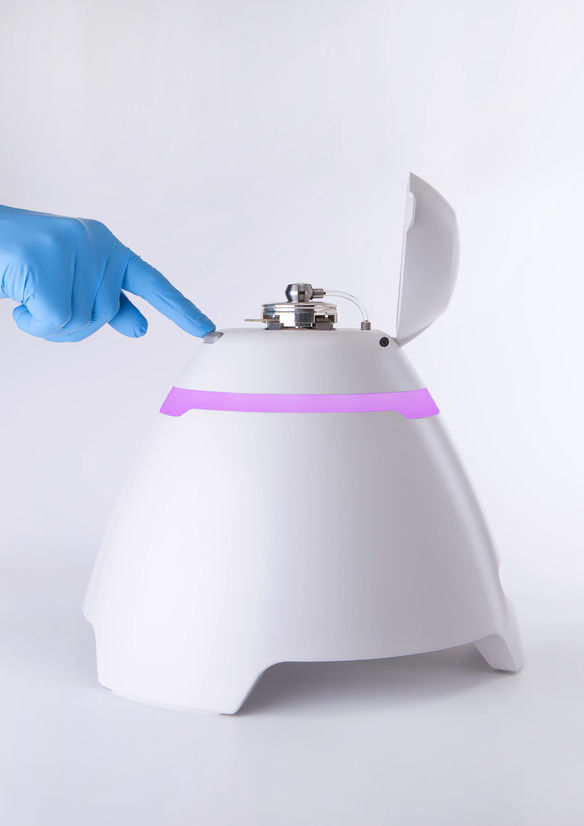 Continuing with the very successful use of colour in Izon’s AFC product an Illuminated halo ring is utilised giving clear indication of status and functions via a range of colour and pulses. The halo ring mimics the silhouette of the product amplifying the futuristic science feel. This allows it to be monitored easily in the lab giving a strong sophisticated presence.