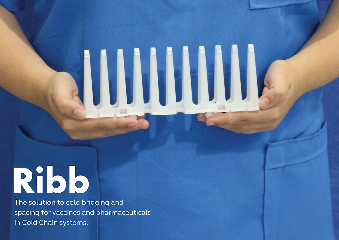 Ribb, provides a significant contribution to the management of Cold-Chain refrigerators within hospital wards, GP practice clinics and community pharmacies. Our innovative design has been trialled within a hospital environment and been demonstrably validated with regards to its design objectives: reducing cold-bridging events, maintaining spacing, improving effectiveness, usability, and navigation location of Temperature Sensitive Pharmaceuticals (TSP's), supporting air circulation, and reducing workload on pressured clinical staff. Ribb helps alleviate mundane aspects of refrigerator management for clinical staff who have the responsibility for adherence to Cold-Chain standards. This has not been without anxiety or concern for the staff whose primary objective is the delivery of quality health care and have been distracted by refrigerator management obligations. Ribb attends to these concerns, providing easier location of TSP’s, easy visual checking and the ability to be used as perimeter bumpers of shelf dividers. Ribb improves quality compliance with Cold-Chain standards, enhancing drug efficacy for patients and those being vaccinated. By improving Cold-Chain refrigeration performance it reduces the wastage of expensive medications, vaccines and TSP’s, improving democratisation of access, particularly in times of pandemics scarcity of newly developed vaccines. The impact of Ribb will be seen over time, through reductions in Cold-Chain breaches, national savings on TSP’s and vaccines, improved efficacy rates and improved job satisfaction of pharmacy staff. Our testing and trialling to date, in hospital, supports validation of the Ribb product as a sustainable and affordable contribution to enhanced Cold-Chain compliance and affordable healthcare.