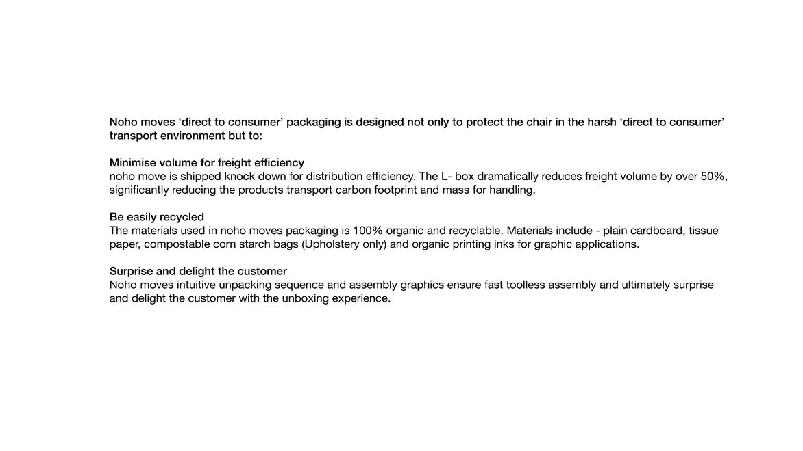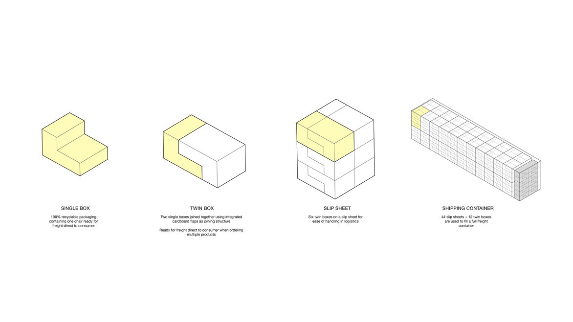 The Formway chair box design is simple, tessellating and space saving across the supply of the product. It just makes sense.