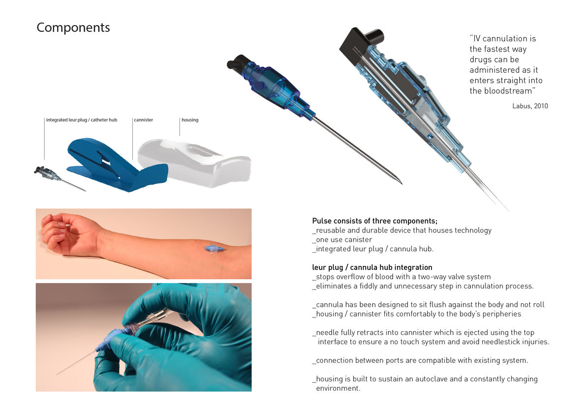 Product Colour Award Product Concept/Experimental Consumer Designed Objects Furniture Lighting Non-Consumer Structural Packaging Sustainable Product Design (SPD) Textile Student & Academic Product Animation Digital Film Graphic Moving Image (archived 2025) Product Social Good Award Spatial Toitanga Value of Design Award User Experience Award (archived 2019) All categories Colour Award Product Concept/Experimental Consumer Designed Objects Furniture Lighting Non-Consumer Structural Packaging Sustainable Product Design (SPD) Textile Student & Academic Product All years 2025 2024 2023 2022 2021 2020 2019 2018 2017 2016 2015 2014 2013 2012 2011 2010 Studio A-Z Abby Farrow Redesigning Intravenous Cannulation 2016 Student & Academic Product Credits Te Kapa Tauira / Student Team Abby Farrow Kaiako / Tutors Lyn Garrett, Jason Mitchell, John Wells School Massey University College of Creative Arts Judge's comments: The judges recognised the thoughtful research, level of design resolution achieved and creative application of technology that led to this innovative design concept intended to improve practitioner performance and patient experience.