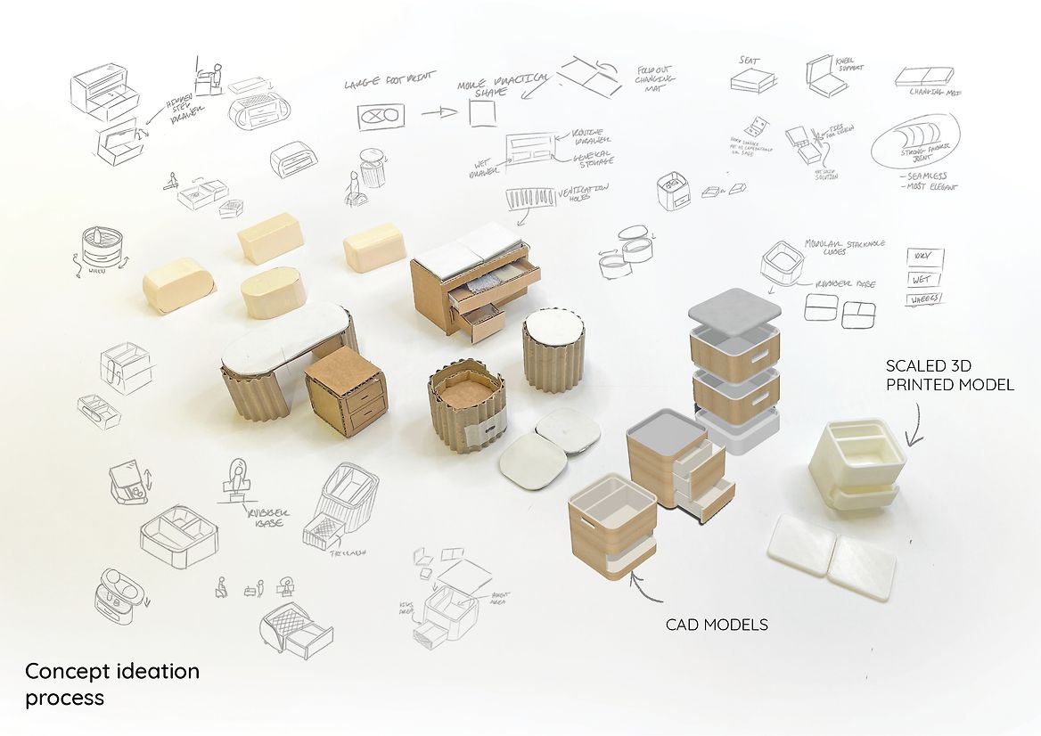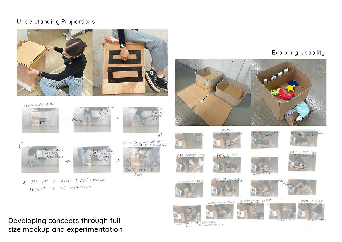 By using a user-centred design approach, I sought to understand the needs of parents with young children. I am not a parent myself. However, I had the opportunity to immerse myself into a parental mindset by helping care for and bathe young children over a period of weeks. This experience helped me gain empathy for families and insight into areas requiring the most support such as, your hands are always full, everything is out of reach, and you can’t afford to look away. With the experience and insight I had gained, I explore and tested concepts and prototypes utilizing consistent feedback from my key users.