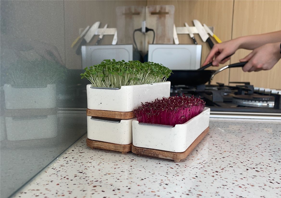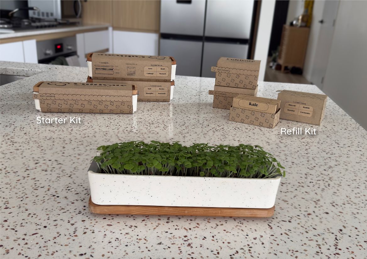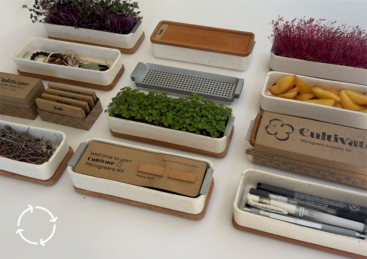 Cultivate is a scalable microgreen-growing solution designed to fit easily into everyday life. Compact, stackable, and low-maintenance, it starts with a starter pack containing everything you need to give it a go, with refill kits for those who want to keep growing. Each seed packet helps support regrowth, making each cycle feel like a fresh, flavourful ritual. Cultivate sits somewhere between a spice mix and an herb pot- inviting users to grow, harvest, and add to meals in a way that feels easy, satisfying, and uniquely their own.