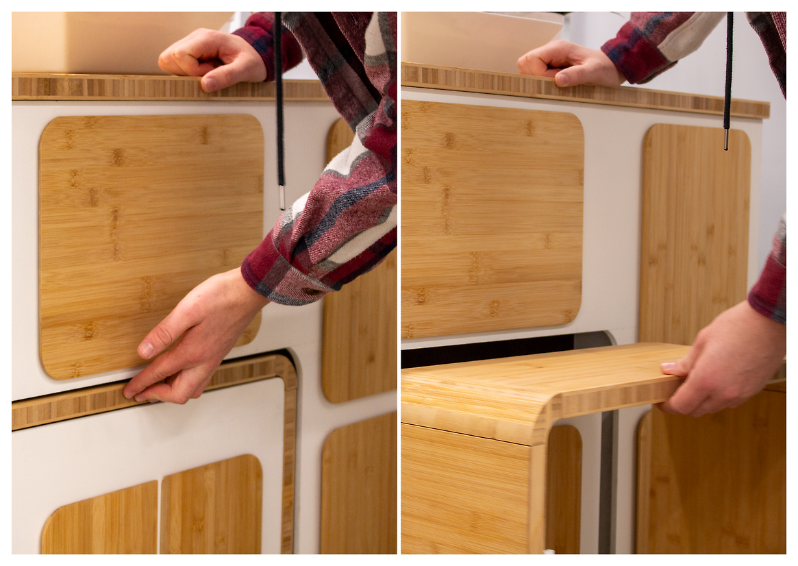 Inspired by the simple reveal of the contents of a drawer in a bathroom vanity, Revelio is discretely revealed through a simple a ‘push & pull’. Revelio supports people with mobility issues and provides a dignified, welcoming experience. Revelio is designed to minimise social barriers to accessibility and make all people feel comfortable and supported.