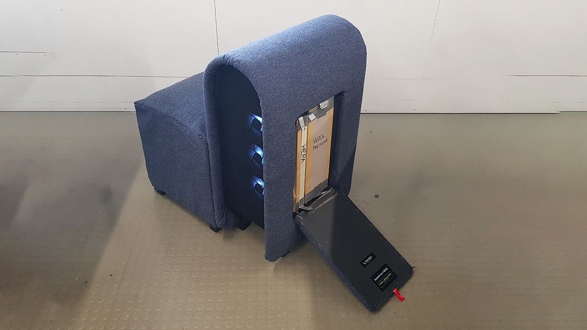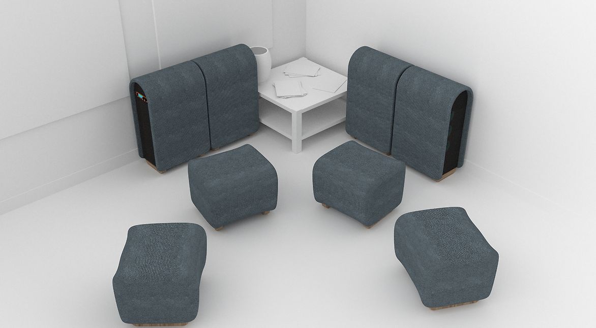 SADDLE's modular design includes a range of components allowing customers to arrange and adapt the furniture to their needs. While all components can be linked into the system, they do not all contain the core purifying system, reducing the cost of the system as a whole, and allowing the purifying function to be scaled as needed. A single SADDLE purifier unit is capable of servicing a room of 22-38 square meters, while additional back segments can be hollow units for air to be drawn through.