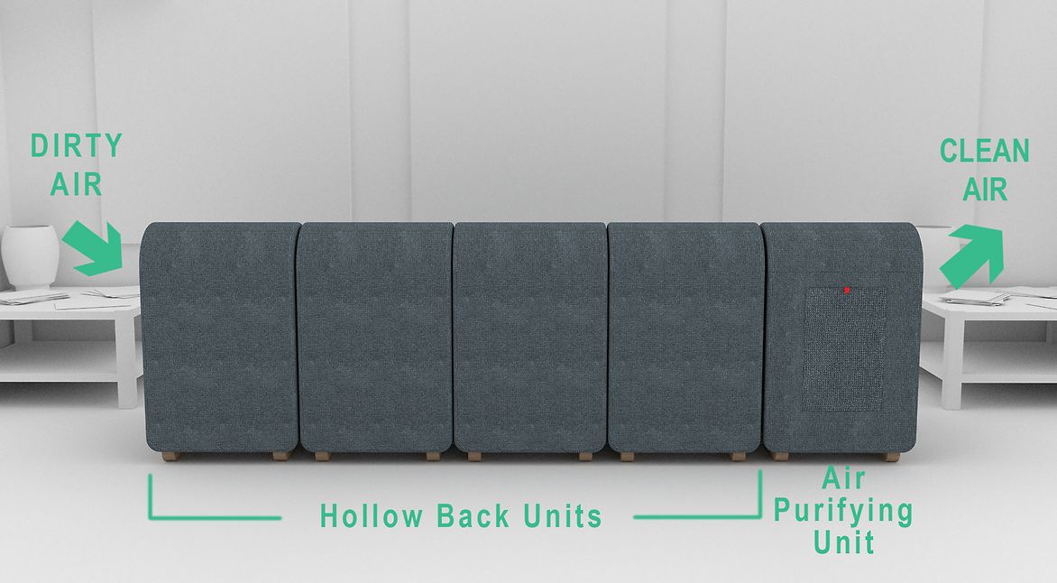 SADDLE is directly aimed at enhancing public spaces, offices, waiting rooms, hospitals, malls, schools and other areas where high-density activity occurs. Additionally, SADDLE offers the flexibility to adapt into a range of household furniture suitable for apartments, townhouses, hotels, and other settings where airflow may be restricted.