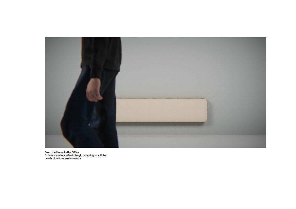 The design is modular and adaptable, suitable for homes, workplaces, or hospitality environments. It fades into the background when needed, yet creates an atmosphere that supports productivity, relaxation, and emotional grounding. Solace is silent, soft to the touch, and visually gentle - encouraging a slower, more intentional experience of warmth.
