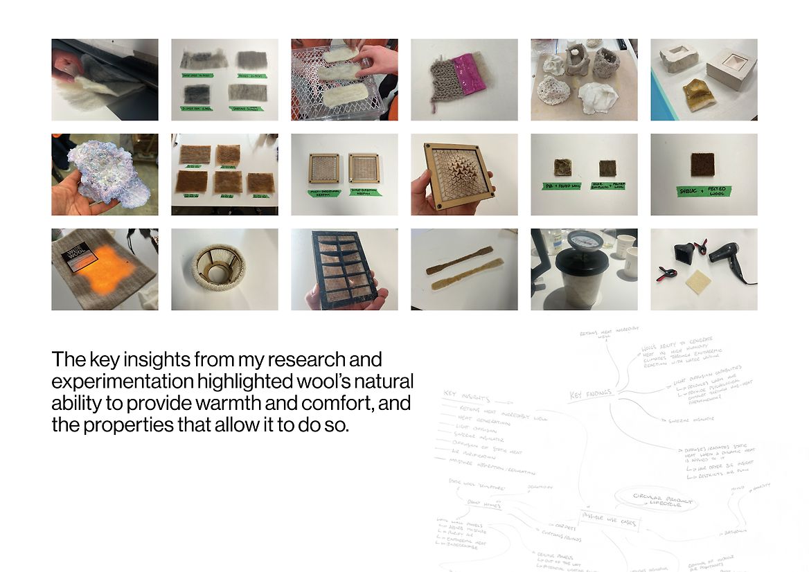 Solace is a heating solution that redefines the experience of warmth through emotional design, material storytelling, and sustainability. Developed in response to the declining value of New Zealand’s strong wool - a coarse fibre often overlooked in favour of synthetics - Solace repositions this abundant resource as a centrepiece of sensory comfort.