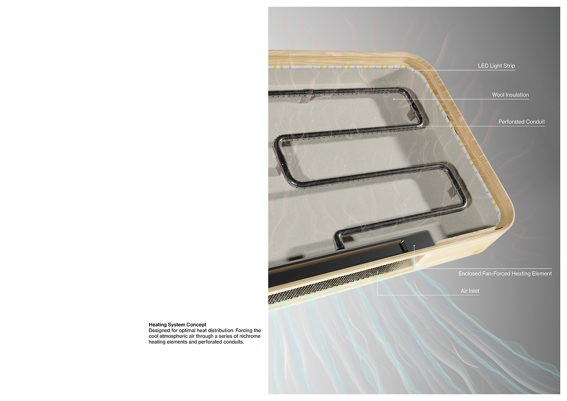Ultimately, Solace creates a new product category: a heater that doesn’t look, sound, or feel like one. It challenges conventional notions of warmth and proposes a future where sustainability and emotional wellbeing are inherently linked - where heat is not just something we receive, but something we feel.