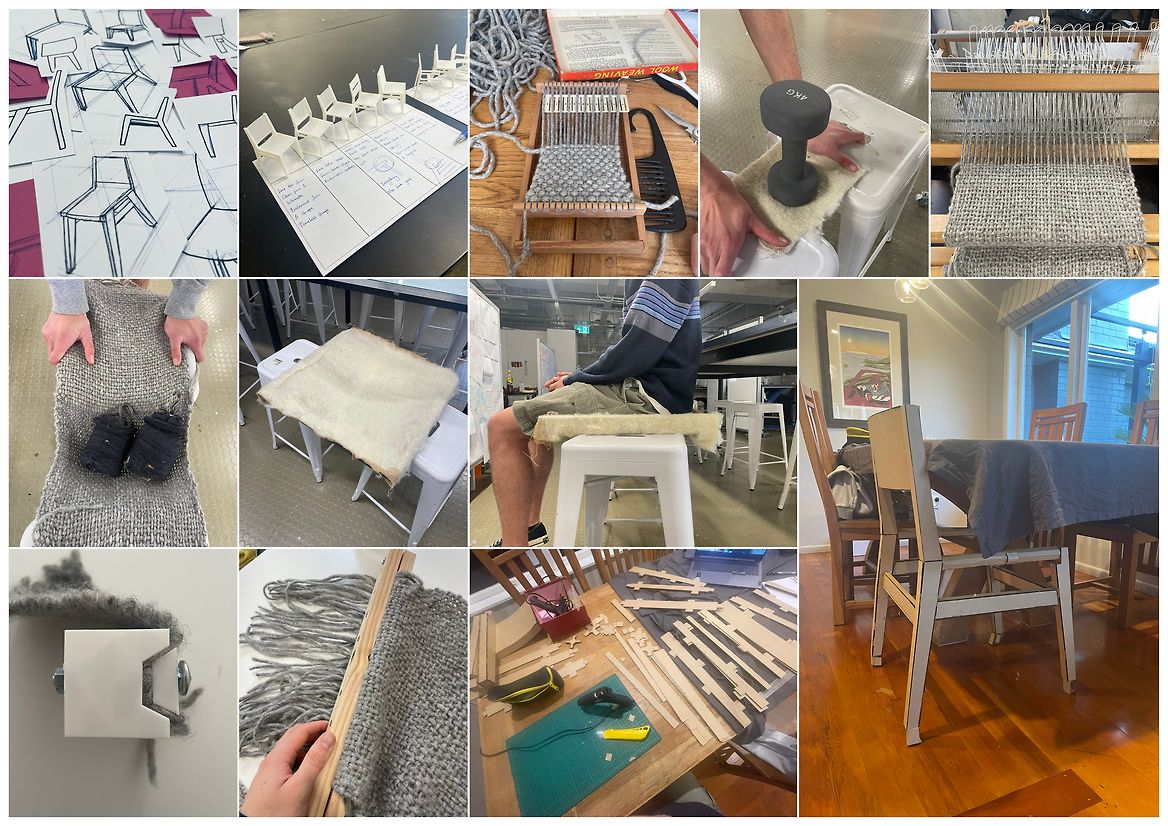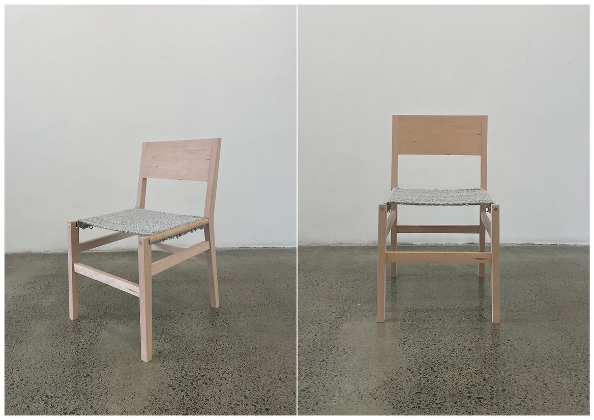 Following a material-driven design process, the project began with broad experimentation into strong wool’s potential. Through hands-on trials, a woven structure was developed that mirrors the canvas of a director’s chair, but with the warmth, texture, and performance benefits unique to wool. The yarn is sourced from Bremworth Carpets’ end of cone waste, repurposing material that would otherwise be discarded into a functional, beautiful product.