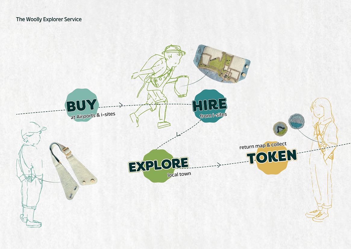 The result is The Woolly Explorer, consisting of a strap, map, and tokens with a woollen twist. The Woolly Explorer provides a narrative that brings together the wool and tourism industry of Aotearoa New Zealand.
