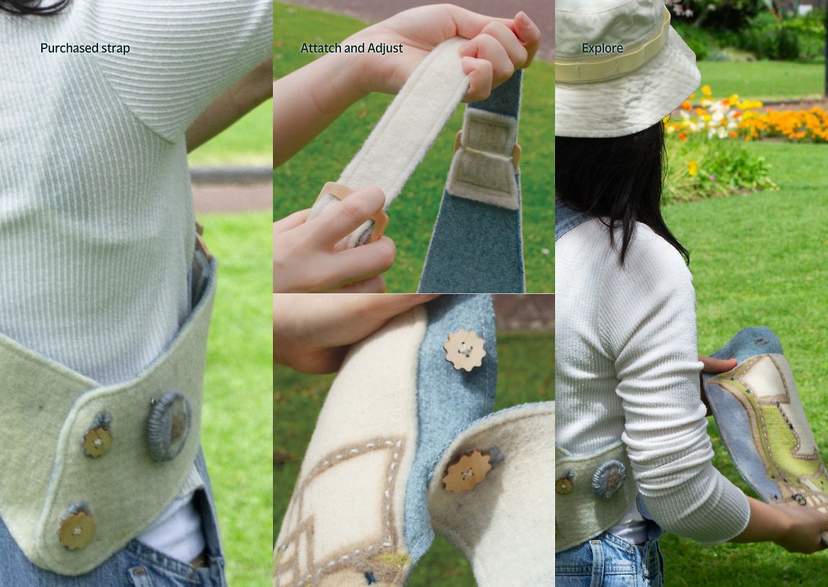 The Woolly Explorer is carefully crafted with strong wool. The soft yet vibrant look of earth tones, and shapes from eco-dying and laser cutting, speak to the landscapes about to be explored. Inspired by the aesthetics of scout sashes and patches, the products are felted and sewn together. At their end of life, maps, sashes and badges can all biodegrade and give back to the land.