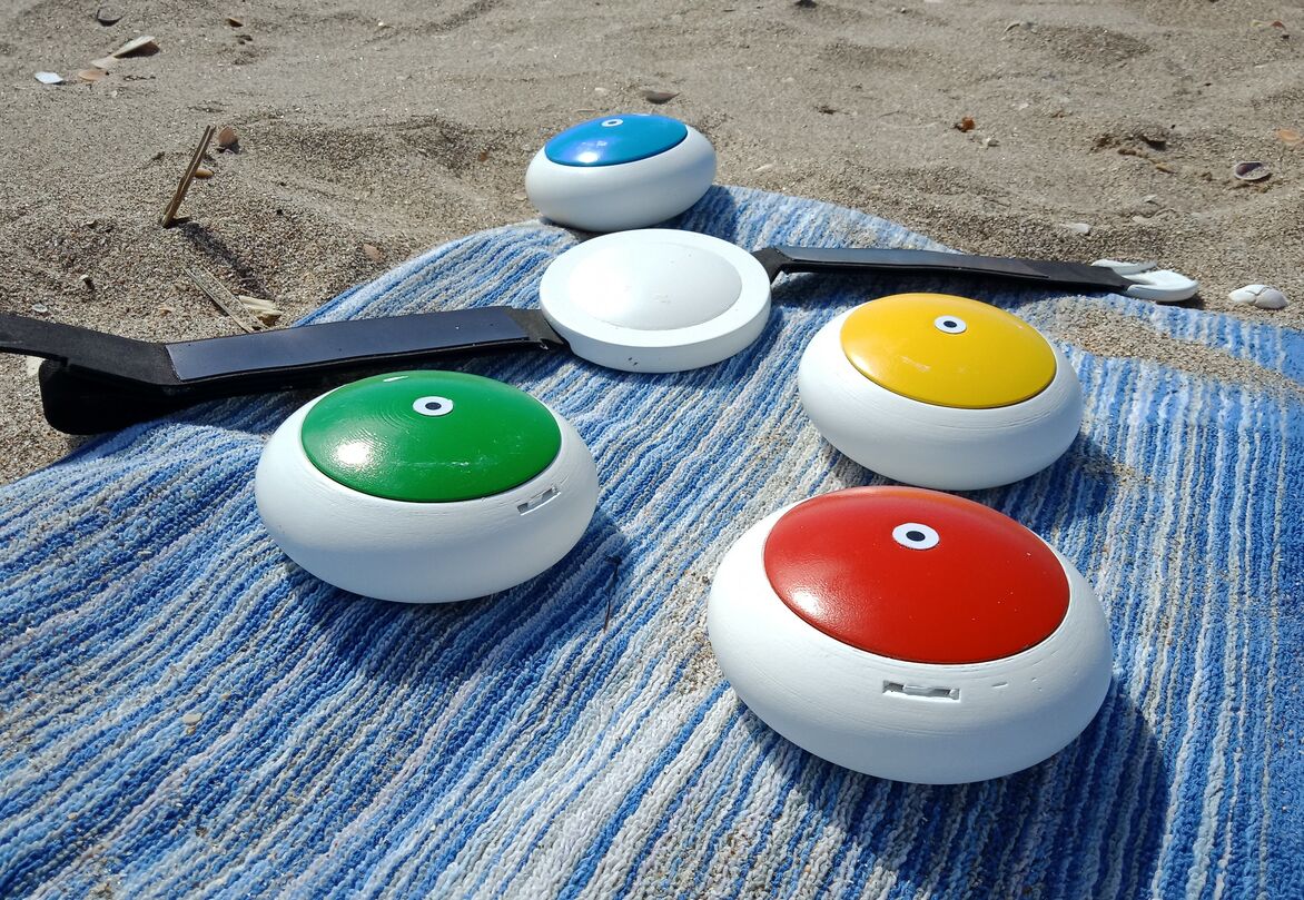 This product also has an additional affordance as a beach bowls game. Each unit can be rolled on the sand to simulate a game of lawn bowls. This encourages younger children to become more interactive with various means of sun safety, therefore creating a mental association between sun safety and playfulness.