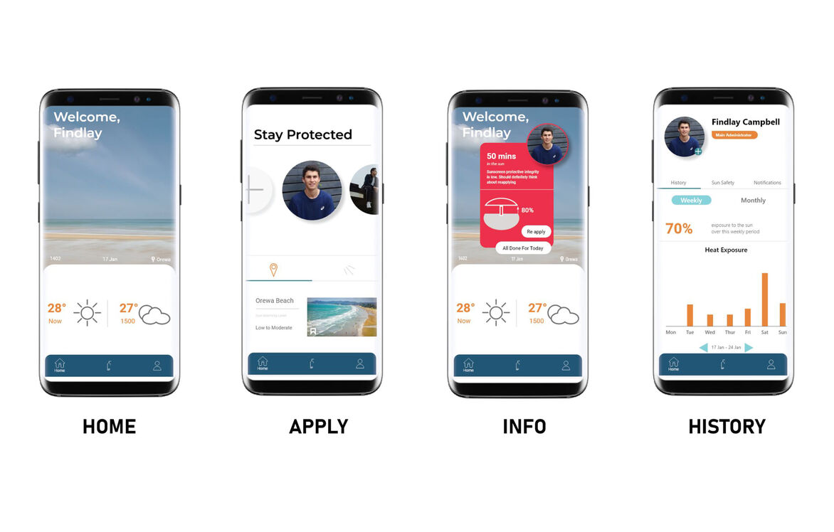 Our design targets two primary user groups in New Zealand. The first is young adults, as statistics show them to be most at risk to the sun due to a lack of both awareness and a sense of accountability. The second is moderate to large families, as they have multiple people of varying maturity to protect, especially young children.