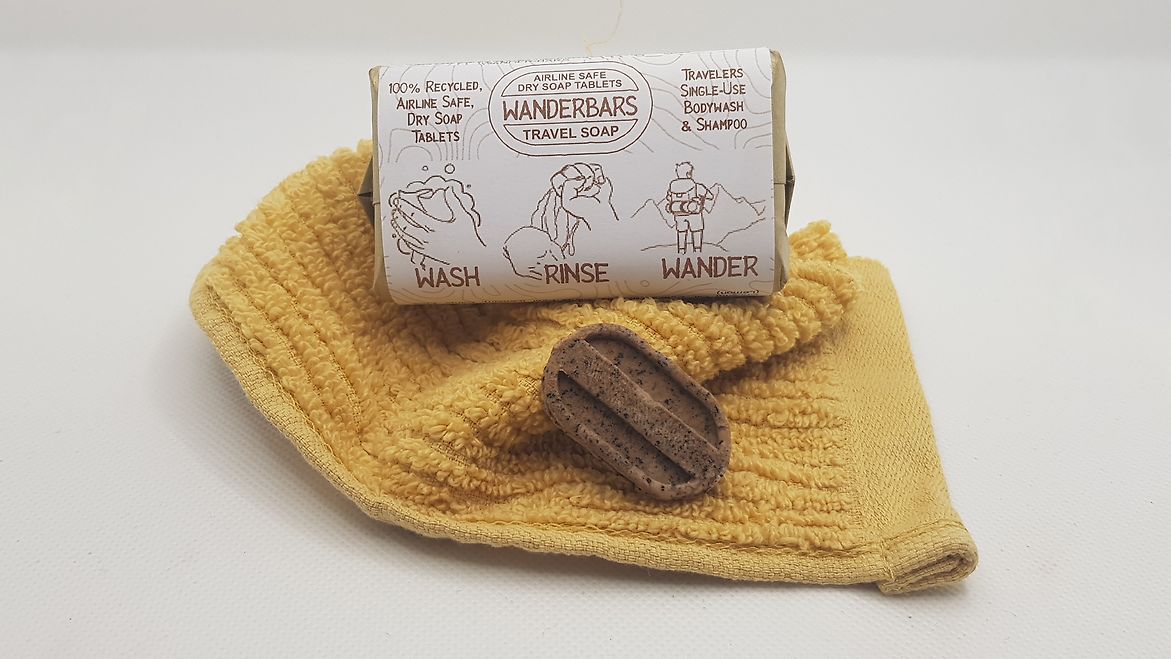 Using WanderBars is simple: just take out a soap tablet and either place it inside a soap-saver body scrub or lather it up in your hands. By the end of your shower, the tablet should have dissolved completely, leaving no soapy residue to worry about. Rinse your body scrub and wring it dry, and then you're ready to continue on your adventure!