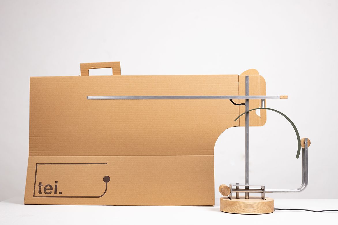 Tei is a task lamp inspired by the Bauhaus movement principle of truth to function, through form. This lamp is a product of collaboration, from a class of 24 and was realised through an iterative process of visualisation, prototyping, screening and continual design review. The final resolved design was then manufactured, in a batch production of 28 identical lamps, boxed and ready for commercial release.
