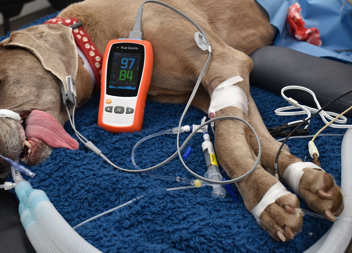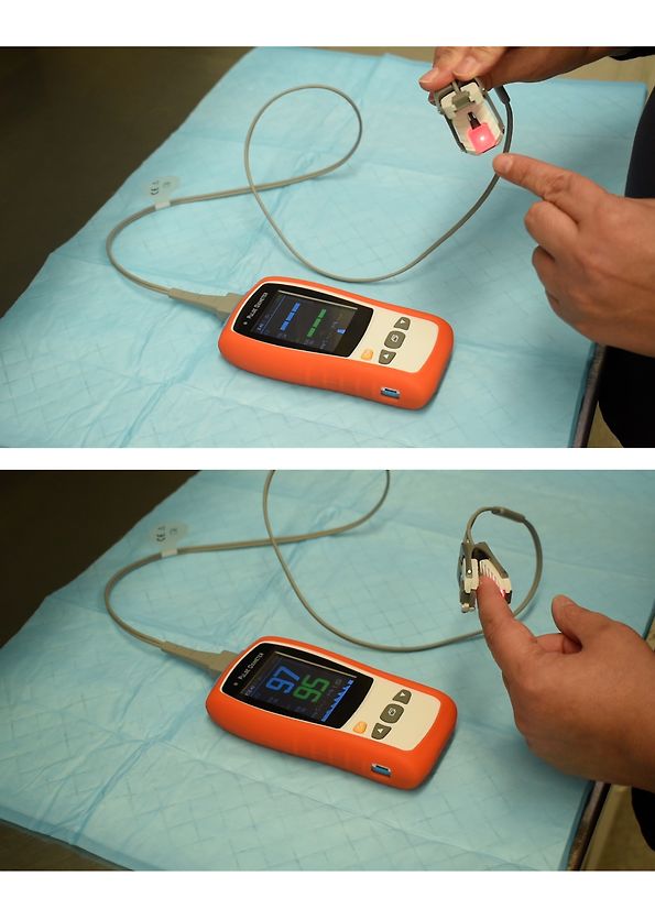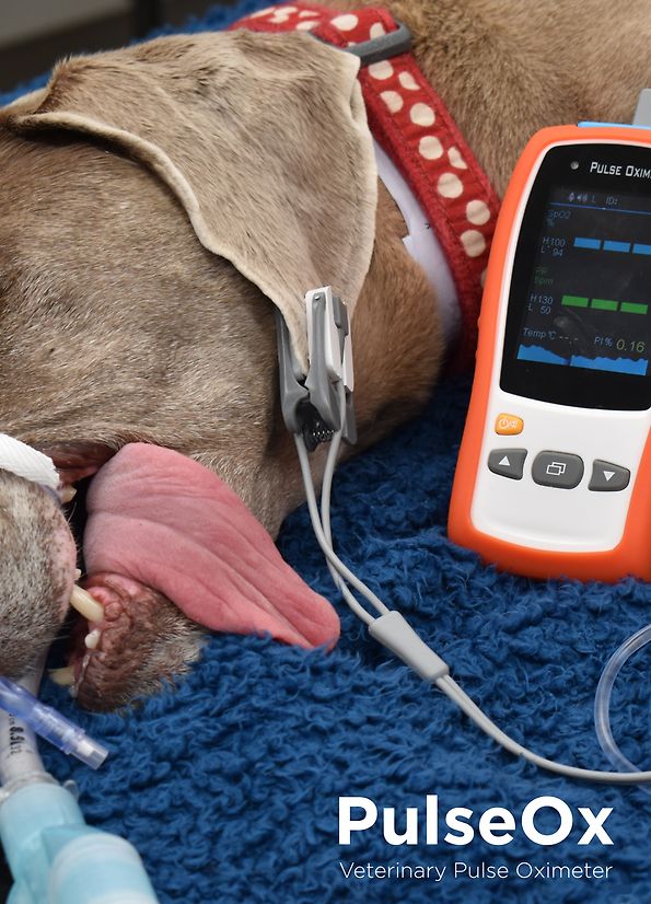 PulseOx, is a veterinary pulse oximeter designed for attachment to tongue, cheek, ear, or paw pad, that accommodates variations in size, shape, saliva, and texture. Often, during anaesthesia, the pulse oximeter clips that monitor an animal’s SpO2 (blood oxygen saturation) levels fail. This results in the clip needing to be reattached to the patient or swapped entirely, a process which disrupts surgical procedure, and endangers the patient.