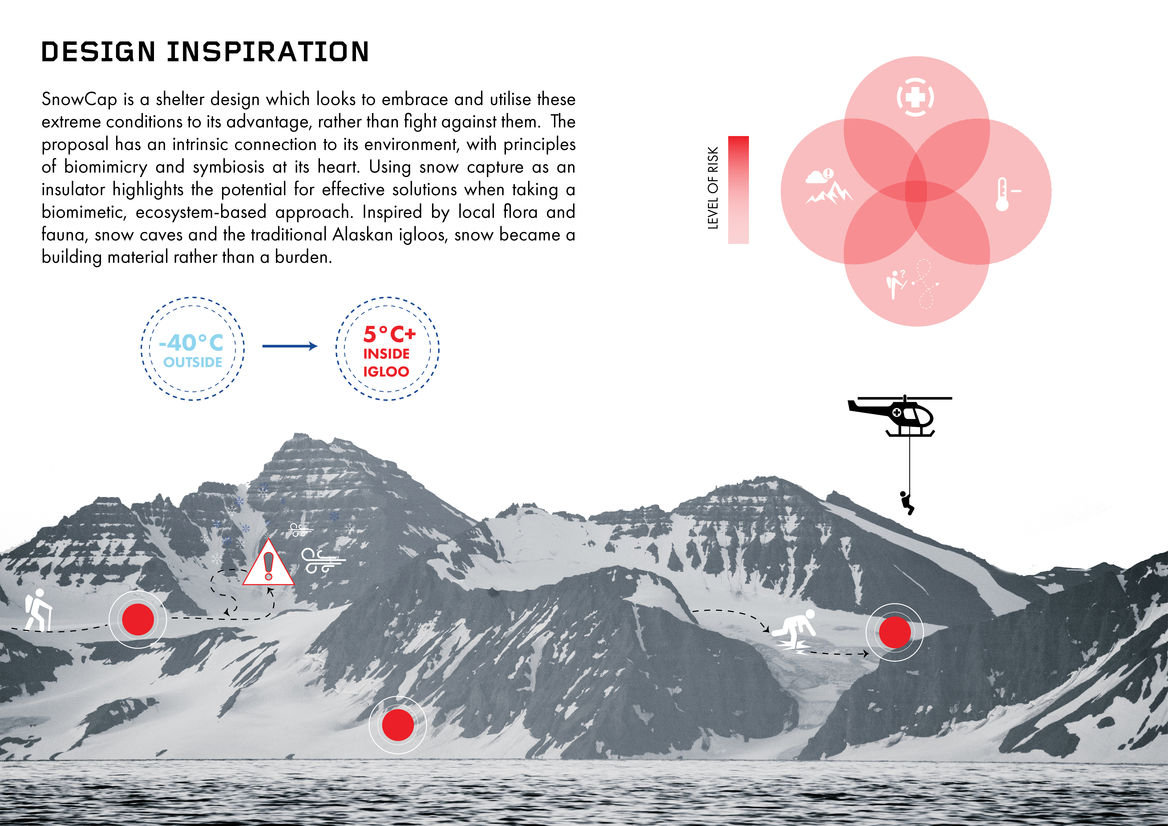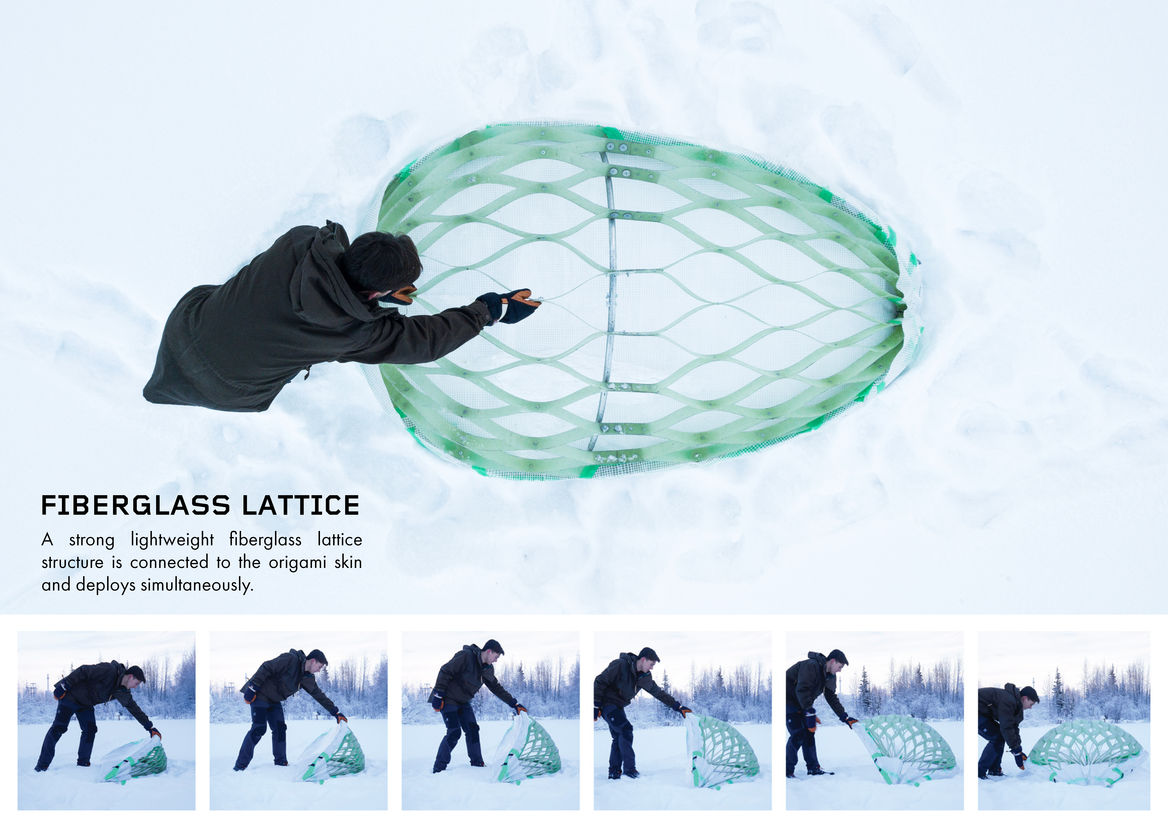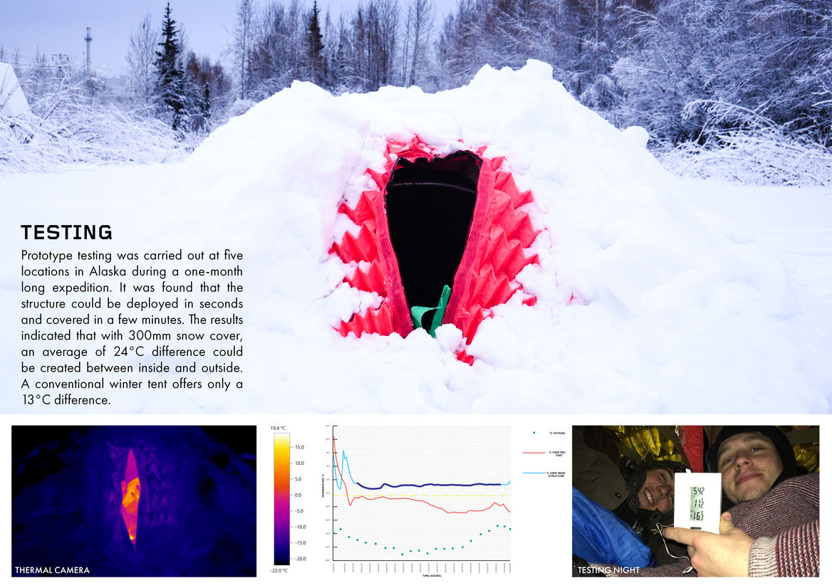 A bright hemisphere from another hemisphere connected with the judges who were impressed by the innovative form, structure, functionality and thorough design research and investigation of this noticeable emergency shelter.
