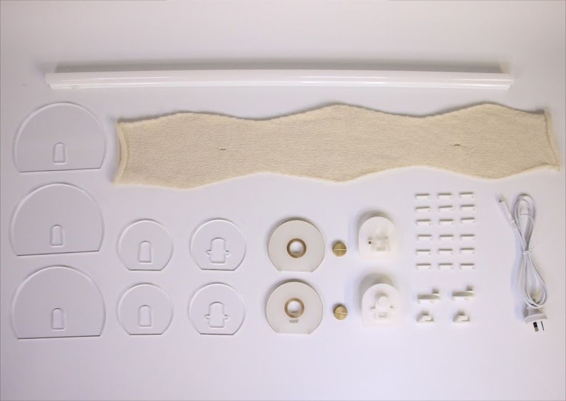 The goal for this project was to develop a frame that incorporates a light source and provides structure for a knitted textile to take shape. The final design celebrates a marriage between the digital fabrication methods of digital knitting, laser cutting and 3D printing. It brings to light the opportunity to embrace these modern fabrication methods to construct an elegant and resolved light piece. Recognising and harnessing the strengths of each fabrication method enabled me to purposefully integrate them, achieving a refined and cohesive design.