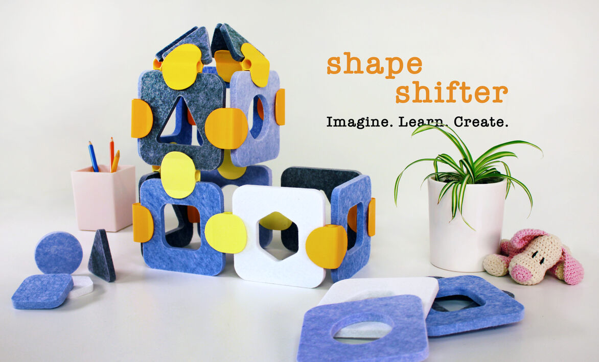 Shape Shifter is a children's building toy made of sustainable materials with interlocking pieces to inspire creativity and develop fine motor skills.