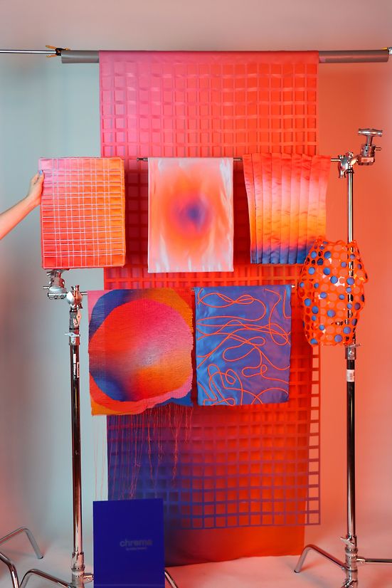 ‘Chroma’ is a collection exploring the relationship between colour and tactility, analysing how these elements interconnect with one another in the physical world. My project is derived from the historic colour theorist Johannes Itten and his seven colour contrasts. ‘Chroma’ focuses on rebelling against the flatness of colour in today's digital society and reintroduces the three dimensional form of colour. Using colour theory and Itten’s colour contrasts, this collection generates diverse perceptions of colour which encourage the user to interact with the surfaces of my textiles.