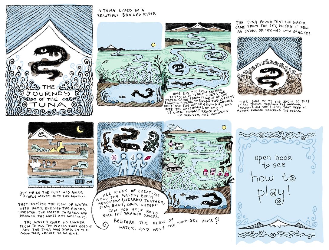 The goal is for players to learn how each braided river needs access to the water distribution. Players will learn how each river travels through different environments and on different paths. Ultimately, building paths for the Tuna to travel down. Through our design, players will learn about the unique and special braided rivers and why we must work to protect them.