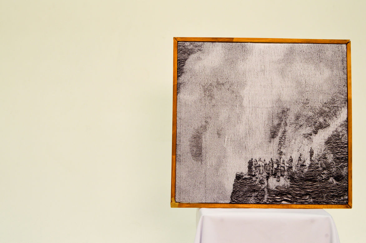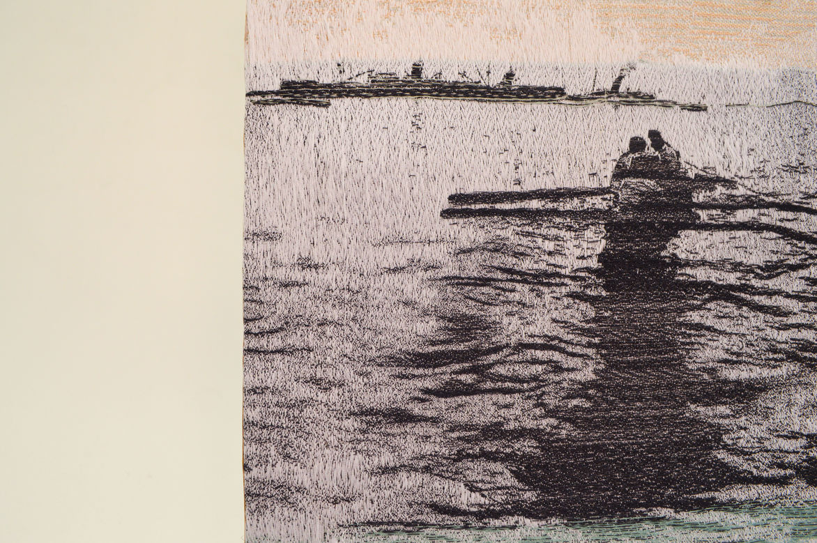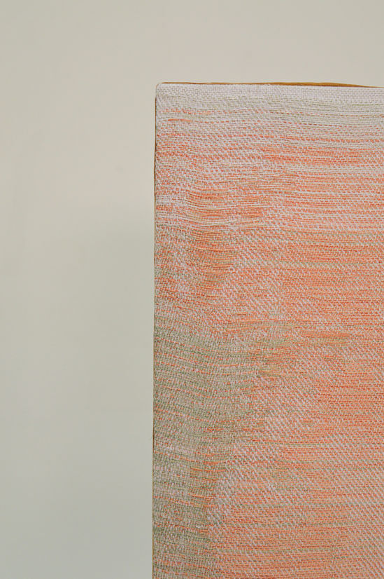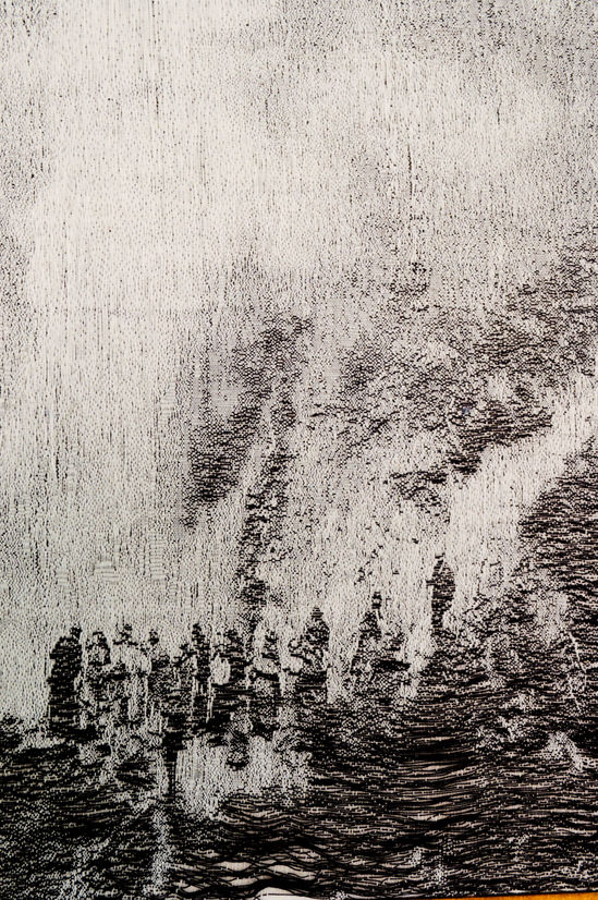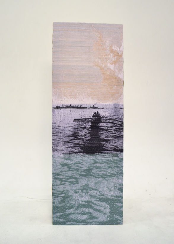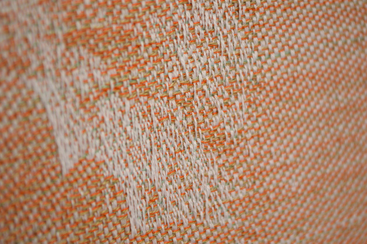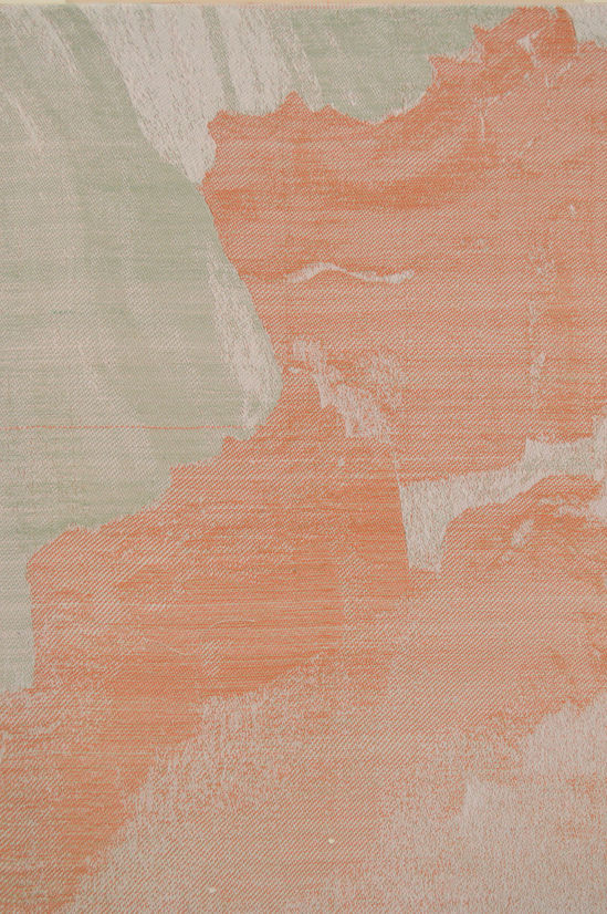The process of weaving on the TC2 loom requires any hand crafted work to be transformed into pixels through digital manipulation. This process alters the photographic images as they are stripped right down to black and white, patterns and textures create the shading and definition. The weaving that is in black and white are digital files created directly from an image. The works in colour originate from a combination of painted and digitally collaged explorations.