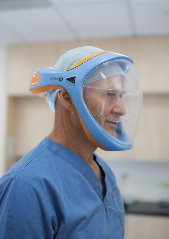 The Rayflect Face Shield is designed to improve the safety and experience of physicians operating medical equipment that emits ionising radiation. Thorough investigation into medical radiation exposure revealed the heightened risks faced by these physicians, particularly in terms of brain cancer, thyroid cancer, and cataracts which can arise over a physicians’ career. Existing shielding equipment often falls short in adequately protecting the face and head.