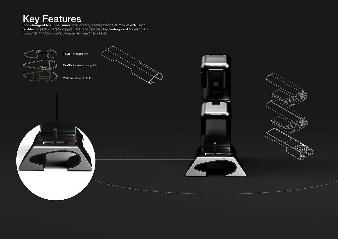 Sicuros modular composition is designed to adapt to different roof rack weight class crossbar profiles. This versatile configuration reduces tooling costs and allows Sicuro to be a cost-effective product that can easily integrate with existing industry-leading roof-rack technologies.