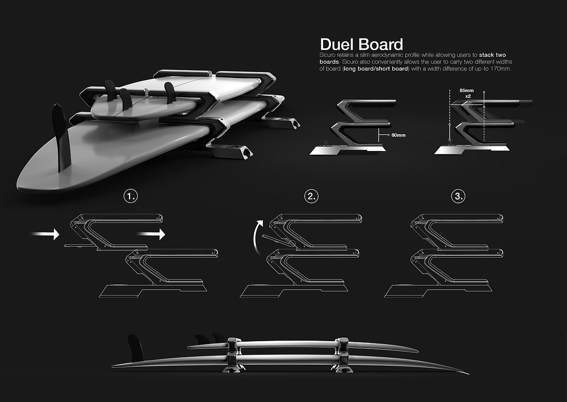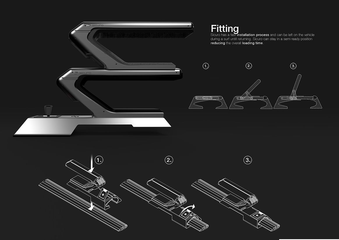 Sicuro is an innovative and easily removable clamp system designed to enhance the surfing experience. Developed as an alternative to the traditional strops used to secure surfboards onto vehicles, Sicuro offers better security, aesthetics, and ease of use.