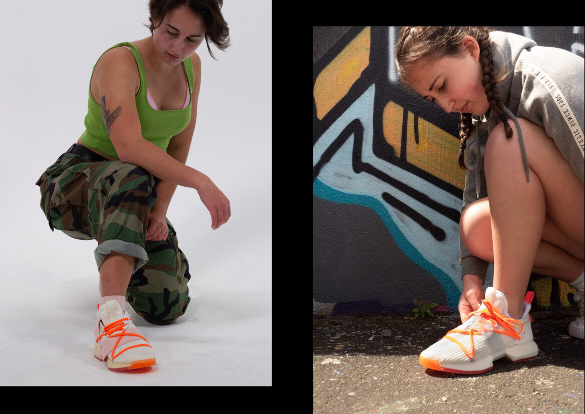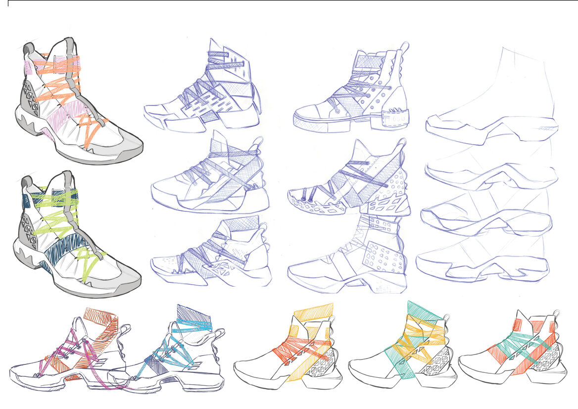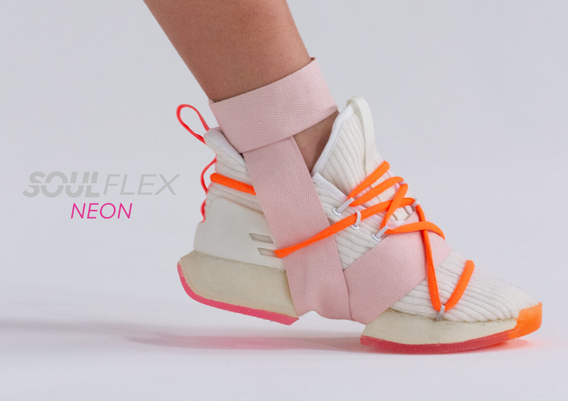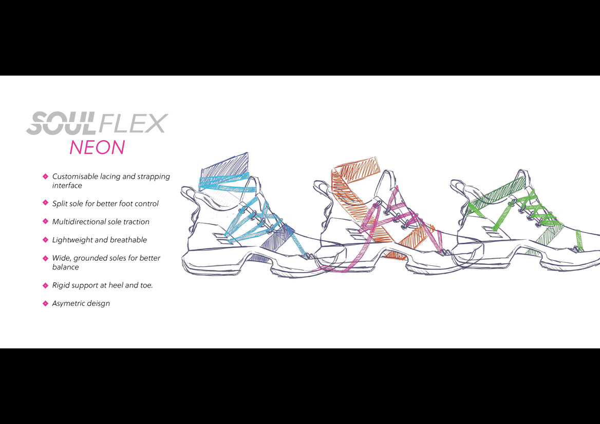 Hip Hop fashion is about standing out, being confident and showing the world who you are. It allows people to express themselves and feel empowered. Soul Flex’s aesthetic is inspired by the bold colours and energetic silhouettes used in basketball sneaker form language. They developed as a part of Hip Hop fashion, so are strongly linked to the culture. The longevity of the Soul Flex lies in its versatility. The customisable lacing and strapping system allow them to be changed through trends and maintain relevance, and also grow with the dancer’s taste. It also creates another layer of expression – the dancer can customise their pair not only to express themselves, but also to suit a range of different performances – like a crew where everyone must match, or to fit the aesthetic of a particular costume or character. Soul Flex aims to connect with the dancer and become an extension of their self or the character that they seek to convey. By supporting dancers physically and emotionally, Soul Flex inspires a more intimate relationship between dancer and shoe, increasing dancer’s confidence and making the shoes less likely to be replaced prematurely due to trends.