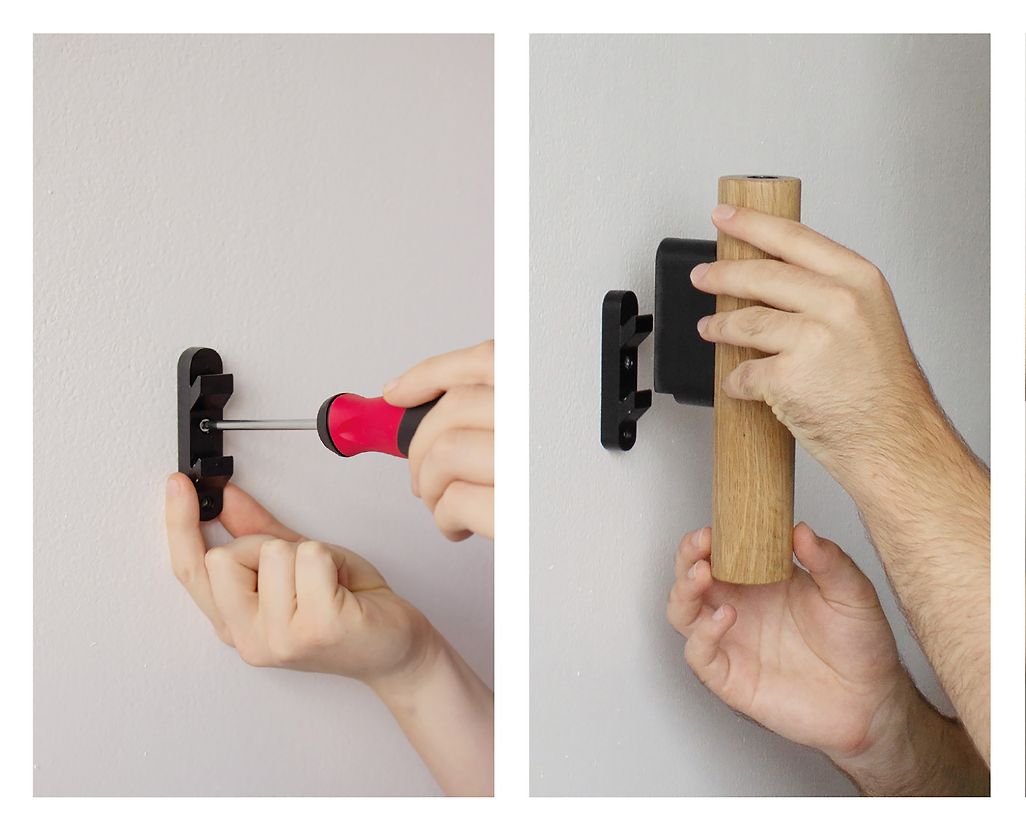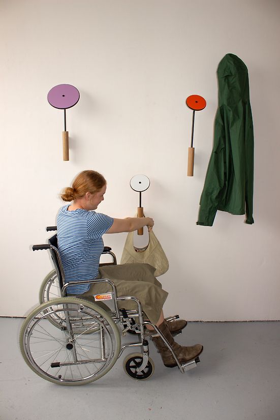 The stalk element of Sprout comes in a range of lengths, allowing the opportunity to raise longer garments for clearance, or above small enquiring hands. Sprout, by design, can accommodate all users by considering the placement of the base unit ensuring children's access and participation in household management. The hexagonal, tapered end of the stalk locates and locks when dropped into the base mount. Each head can be turned and placed for compositional effect.