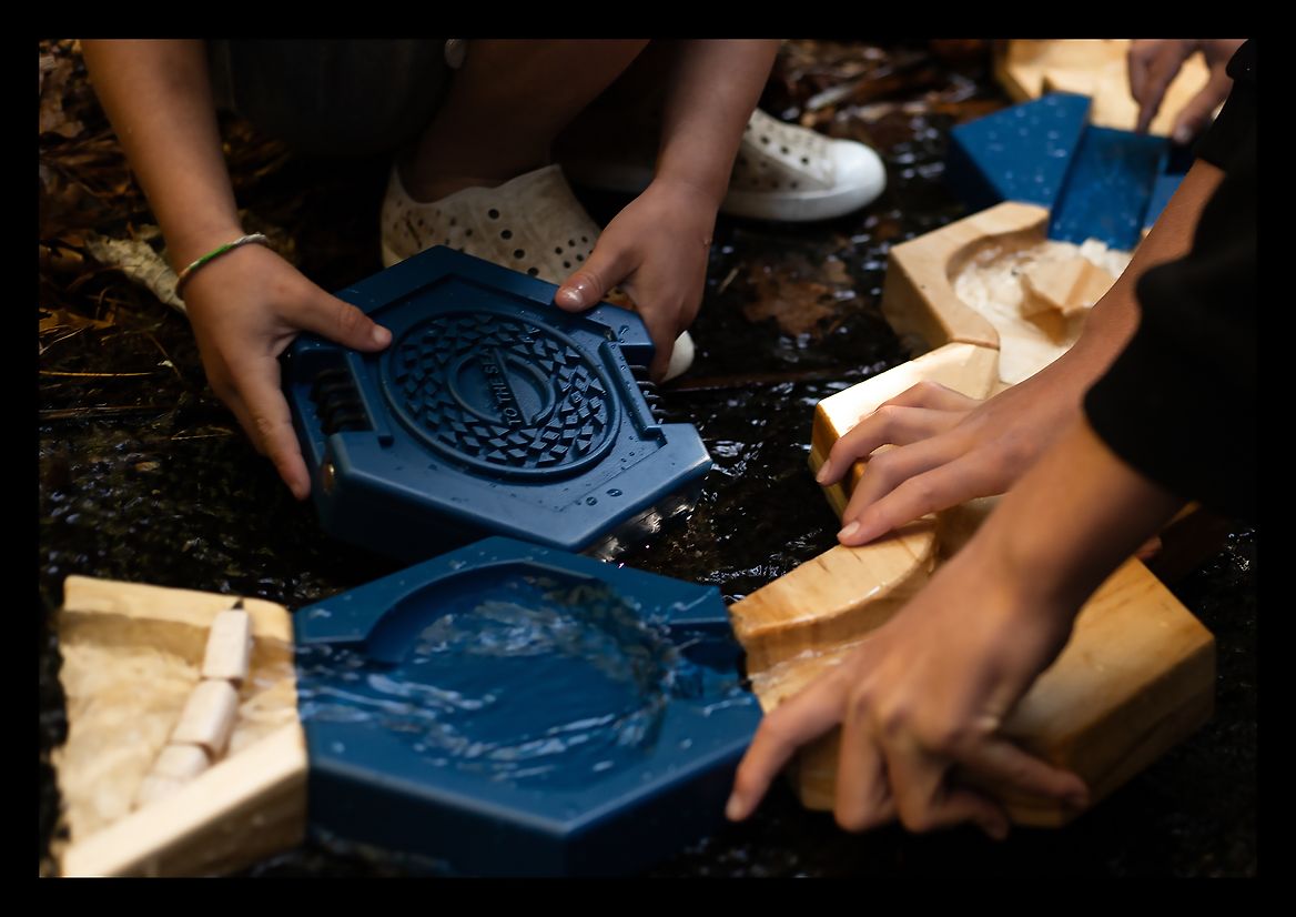 Eels migrate from wetlands down freshwater rivers to the ocean to spawn. After hatching, young eels must travel back up these rivers to mature in the wetlands, completing their life cycle. However, human modifications to waterways, such as dams and culverts, often block this journey. This real-world issue continues to impact eel populations across Aotearoa. Rivers and streams play a vital role in our society. Wild Wetlands encourages children to spend time outdoors and engage with these natural environments through the play structure of the modular tiles and the open-ended narrative around rivers and streams, which this design affords.
