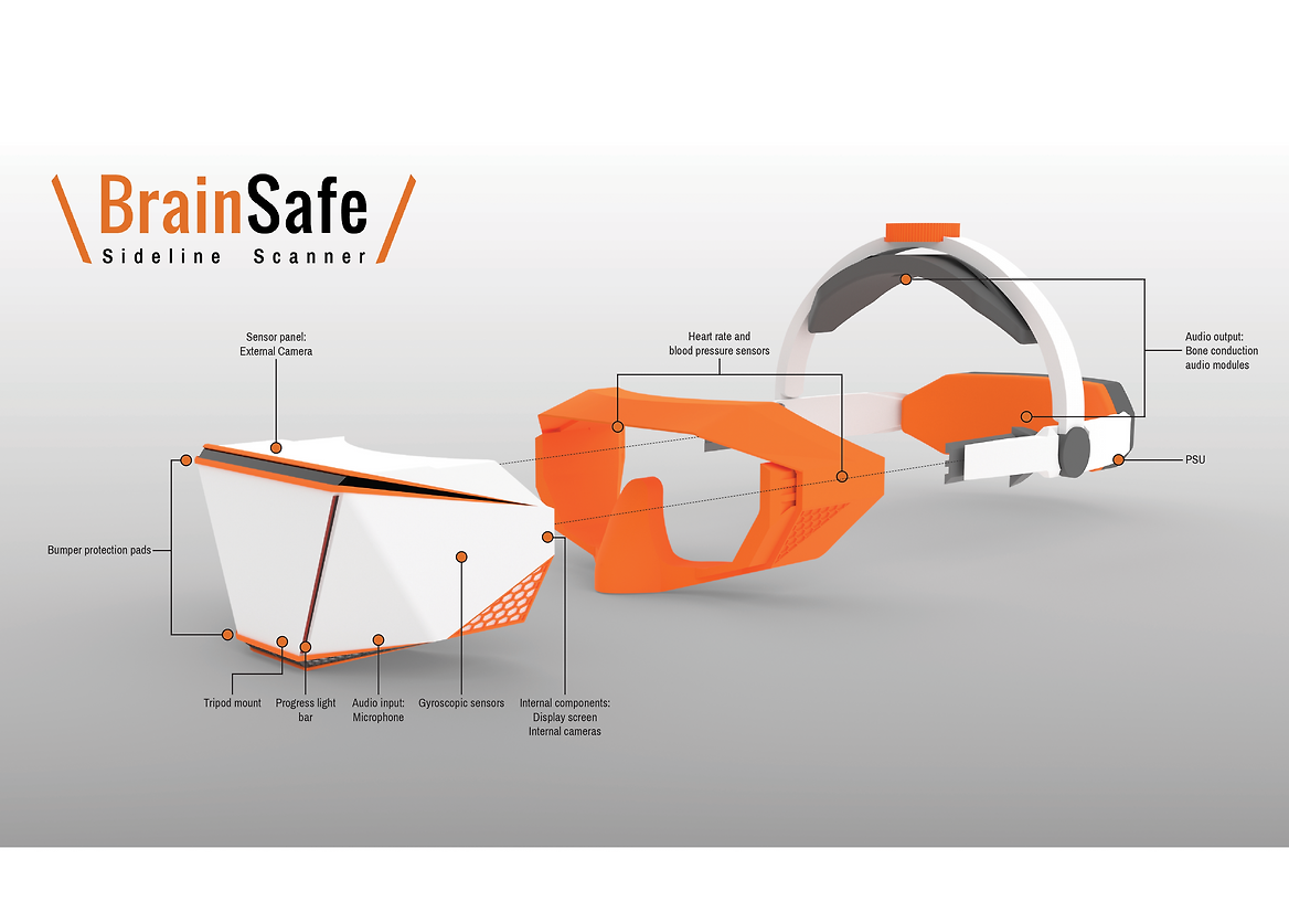 There are more than 100 recorded brain injuries daily in New Zealand, with 20% to 30% occurring from playing sports and other recreational activities (ACC). There is an opportunity and need to innovate sport related concussion testing and provide a greater level of understanding and equity of care to the at risk population. BrainSafe Sideline Scanner aims to reduce sport-related concussions and secondary impacts by providing an accurate, efficient and reliable return to play result. Through the utilization of emerging technology to modernize and automate the sport related concussion testing process, existing issues faced with currently used testing tools have been improved upon. Utilizing artificial intelligence and virtual reality to simulate augmented reality. The final design is a headset based solution that autonomously performs the concussion test. The innovative use of AI and VR helps to resolve the current issues identified with existing testing tools. This includes testing times, cost, standardization, pretesting and requiring the presence of a medical professional to perform tests.