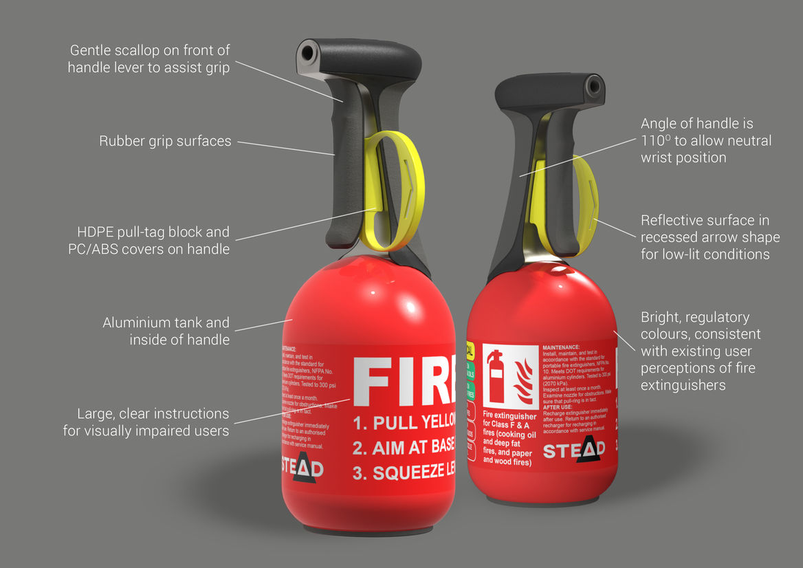 Product Colour Award Product Concept/Experimental Consumer Designed Objects Furniture Lighting Non-Consumer Structural Packaging Sustainable Product Design (SPD) Textile Student & Academic Product Animation Digital Film Graphic Moving Image (archived 2025) Product Social Good Award Spatial Toitanga Value of Design Award User Experience Award (archived 2019) All categories Colour Award Product Concept/Experimental Consumer Designed Objects Furniture Lighting Non-Consumer Structural Packaging Sustainable Product Design (SPD) Textile Student & Academic Product All years 2025 2024 2023 2022 2021 2020 2019 2018 2017 2016 2015 2014 2013 2012 2011 2010 Studio A-Z Miriam MacLean Improving Fire Safety for the Elderly: Stead Fire Extinguisher Finalist 2017 Student & Academic Product Credits Te Kapa Tauira / Student Team Miriam MacLean Kaiako / Lecturer Andrew Drain School Massey University College of Creative Arts