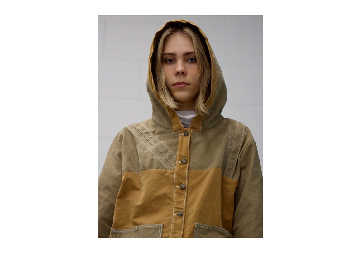 I have incorporated numerous tent features in to the designs, like the ‘tent vent’ on the back of the jacket, re-using old repair patches and re-using the original rivets and stitching across all pieces. It was important to me to use features from the tent’s history whilst still creating functional and wearable contemporary clothing.