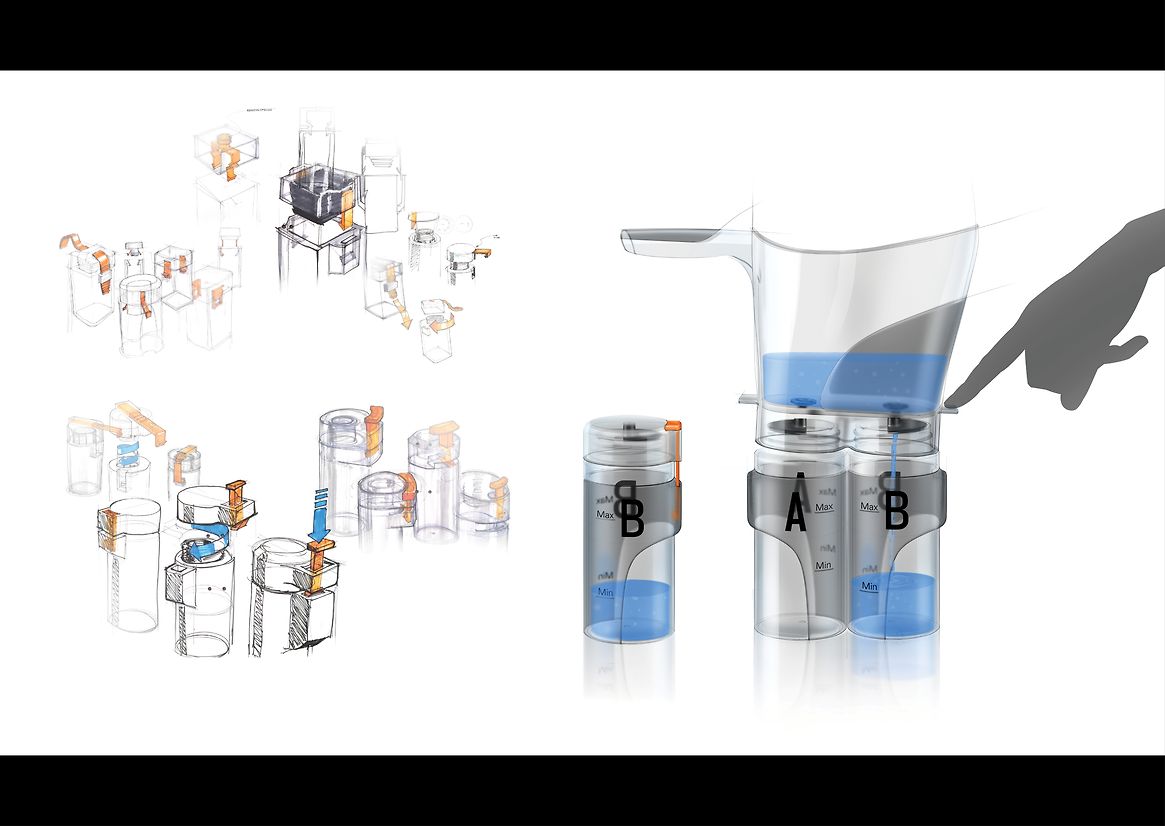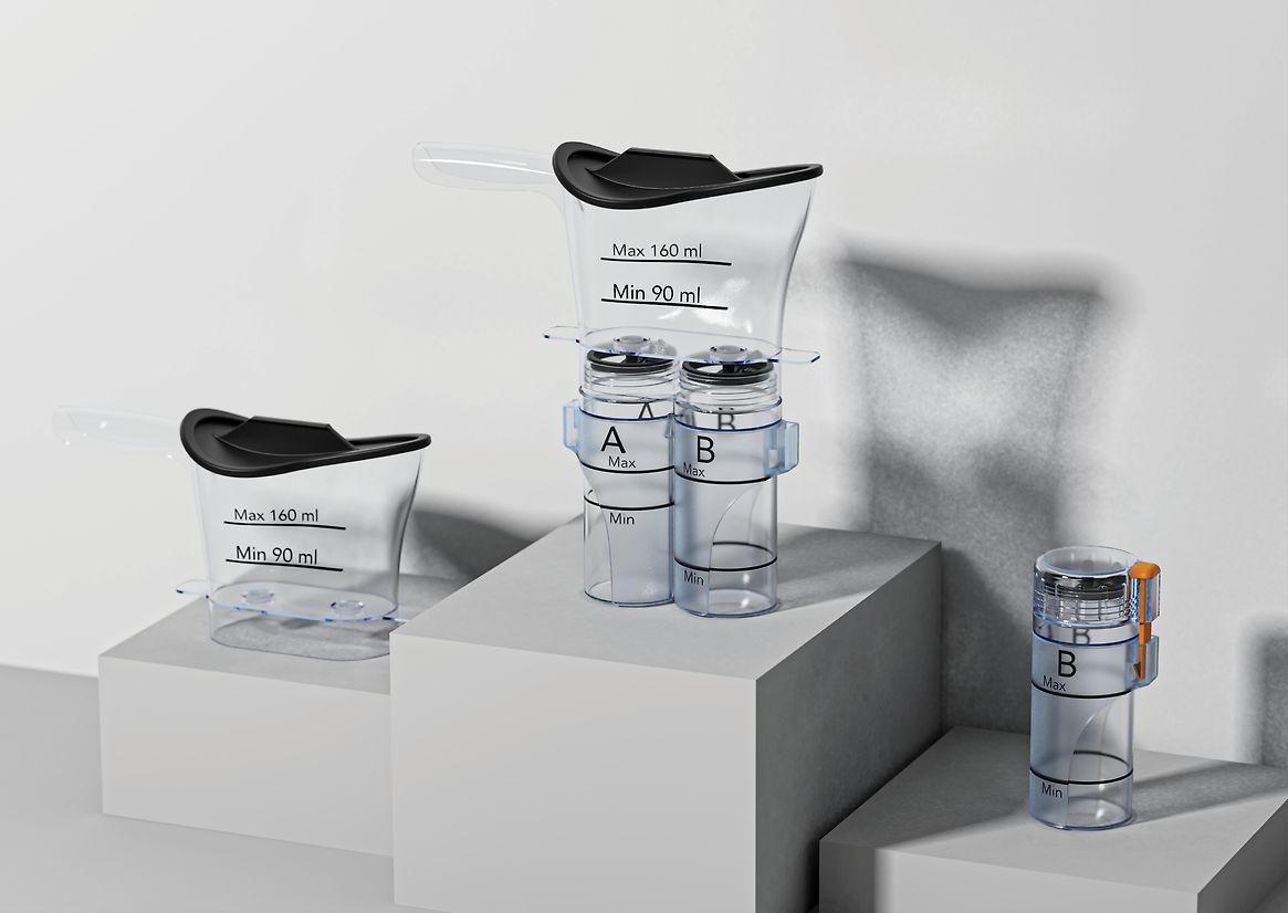The final design for Pre-podium offers an ergonomic collection vessel designed to be easier to collect urine with, this includes an exterior handle to keep the hand away from urine. Once a sample has been collected this can be placed on top of the transport bottles and distributed safely using two valves in the base of the collection vessel. The updated bottles are designed to not look intimidating whilst having the security pin contrast and stand out; allowing athletes to feel comfortable using them yet giving them confidence that their sample is secure and cannot be tampered with. Once the bottles have reached the lab they can be easily opened by cutting through the trapped security pin - leaving obvious evidence of opening.