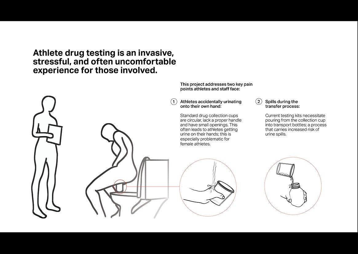 Athlete drug testing is currently a very unpleasant experience, it is invasive, unhygienic, and uncomfortable for the athletes involved. Part of this is due to security measures needed to ensure test integrity but a significant part of the issue is due to the continued use of outdated testing equipment that does not accommodate the needs of the athletes (especially women) using it.