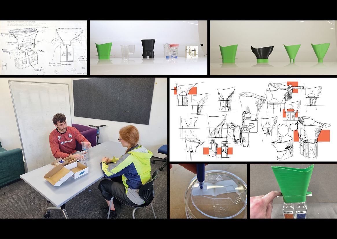 The design process for this product system started with a participatory ideation phase working with athletes to produce unique concepts; functional models of the more feasible ideas were mocked up and evaluated using roleplay. From there a single idea was selected and developed iteratively with 3D printed models; Test rigs and roleplay were especially useful here for evaluating concepts whilst working within the universities ethics constraints. Feedback from anti-doping staff and athletes was an essential part of the whole design process.