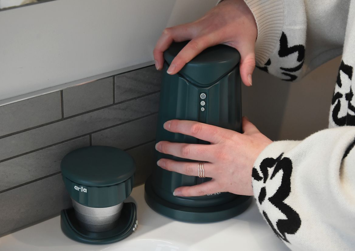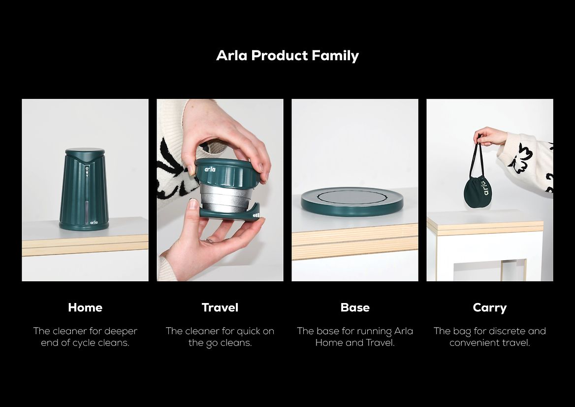 Arla is a multi-product system making cleaning in public and at home easier, with the aim of encouraging more people to switch to reusable period products. The system has four components: Arla Home the in-bathroom cleaner for deeper cleans at home, Arla Travel the portable cleaner for on-the-go cleans in public, Arla Base a wireless charger, and Arla Carry the waterproof bag for ‘Arla Travel’.