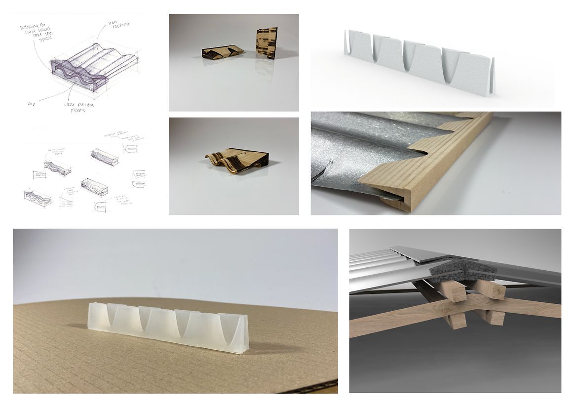 Corrugate Cap is a cover that fits over the end of corrugated iron under the roof flashing to stop water splashes. The current method of roof clinching; the process of turning up the corrugated iron top edge involves hand tools, often pliers to manually turn up the edge. This design removes the need to turn up the iron edge preventing wrist strains which is a common injury when clinching corrugated iron.