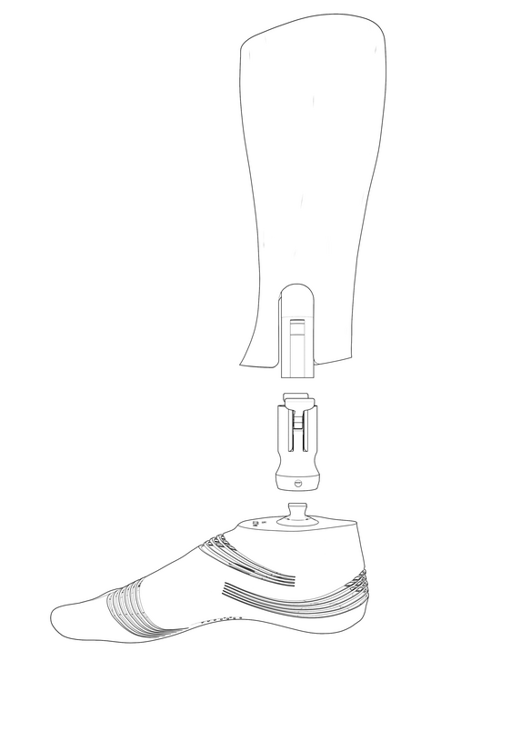 The coupling system was an integral part of the design to reduce having a second activity leg, which is the traditional method if a patient wants a different foot. The simple quick-release lever mechanism allows amputees to easily change between foot prosthetics with their hands or feet whilst maintaining a slim profile that won't get caught by loose clothing. Lastly, it enables amputees to disconnect their foot from the pylon to facilitate putting on trousers, eliminating the need to thread pants over the foot prosthetic due to amputees' inability to articulate the foot.