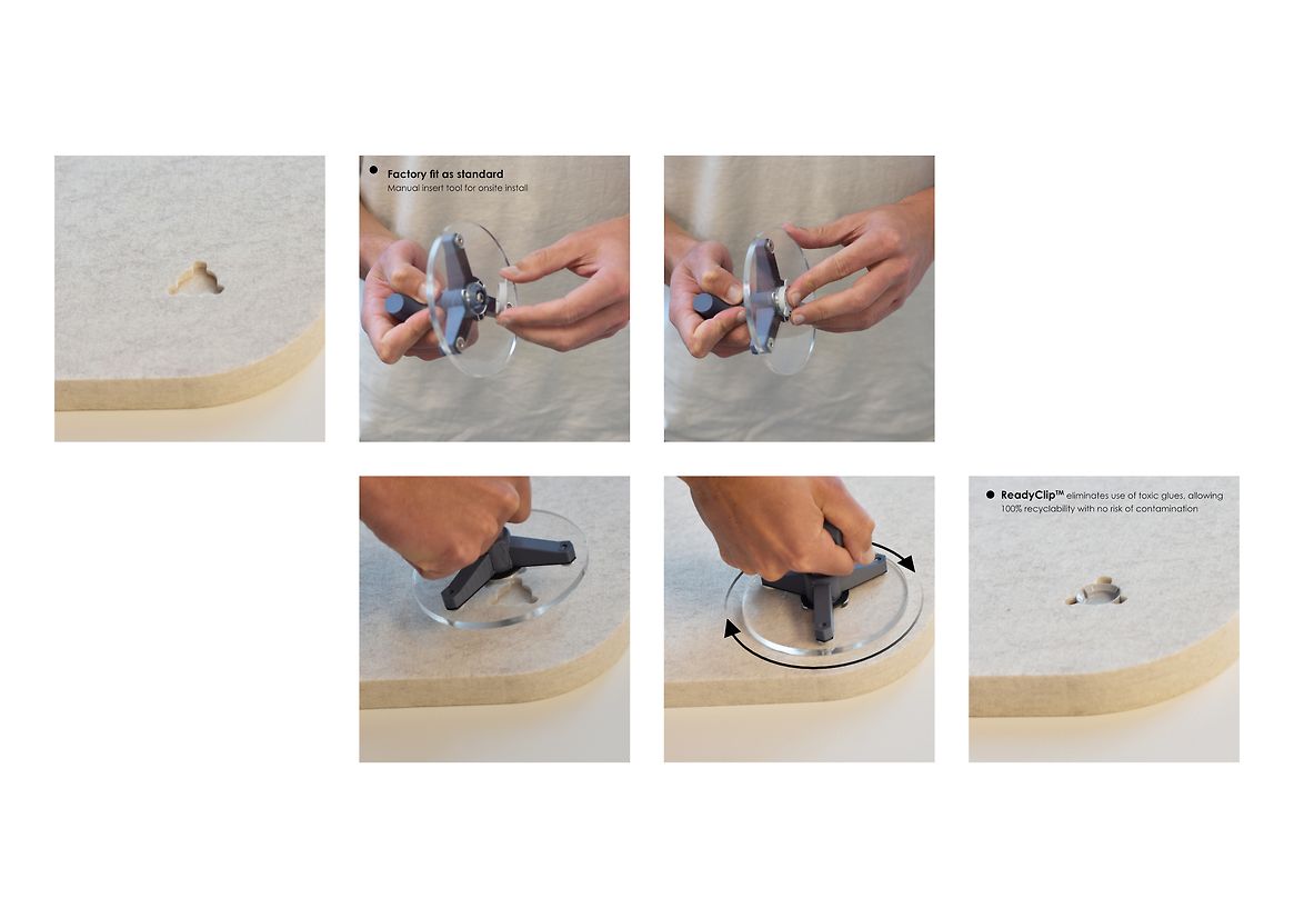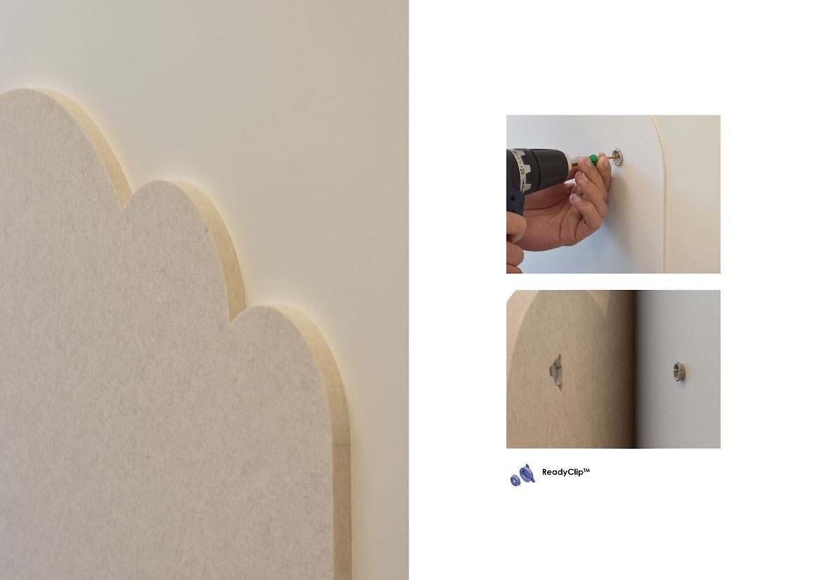 - ReadyClip™ Factory-fitted to panels for clean, fast, glue-free mounting to walls and ceilings