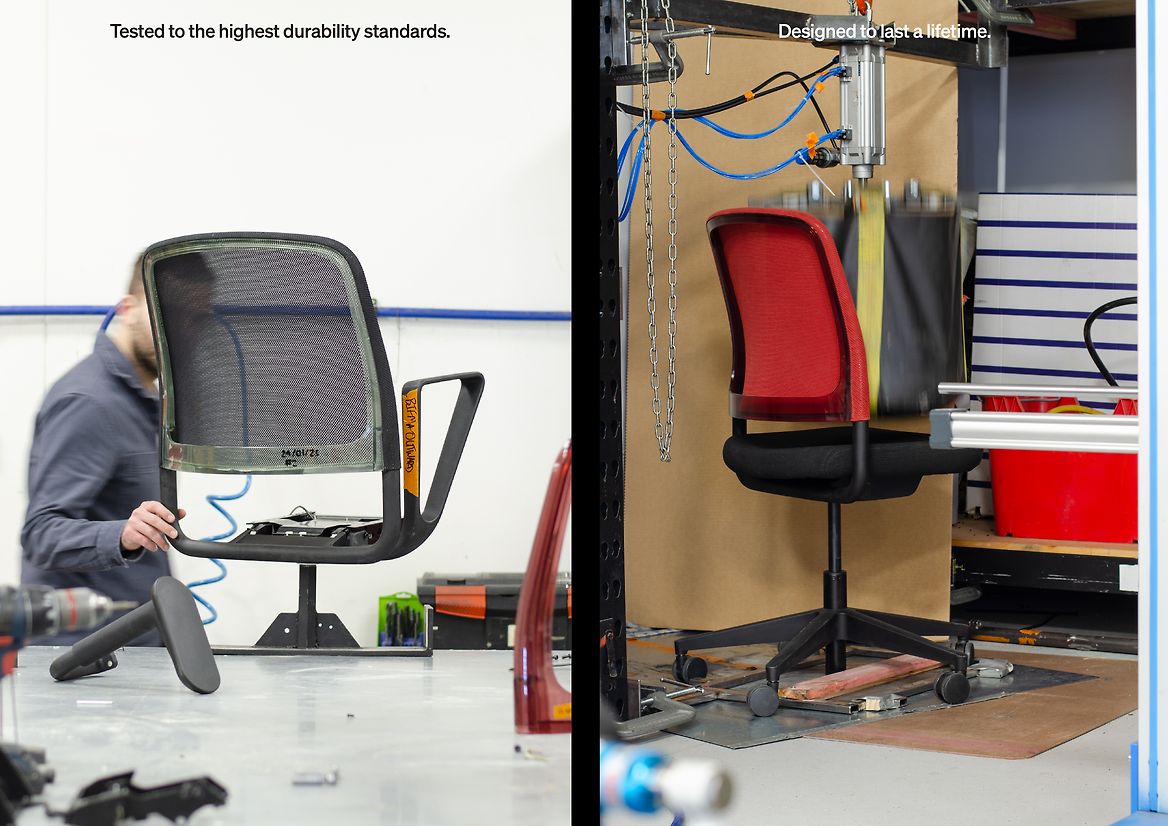 Denn is also tested for longevity as well. Denn meets BIFMA G1 ergonomic guideline and exceeds ANSI/BIFMA X5.1-2017 standard for strength, durability, stability, and pinch points.
