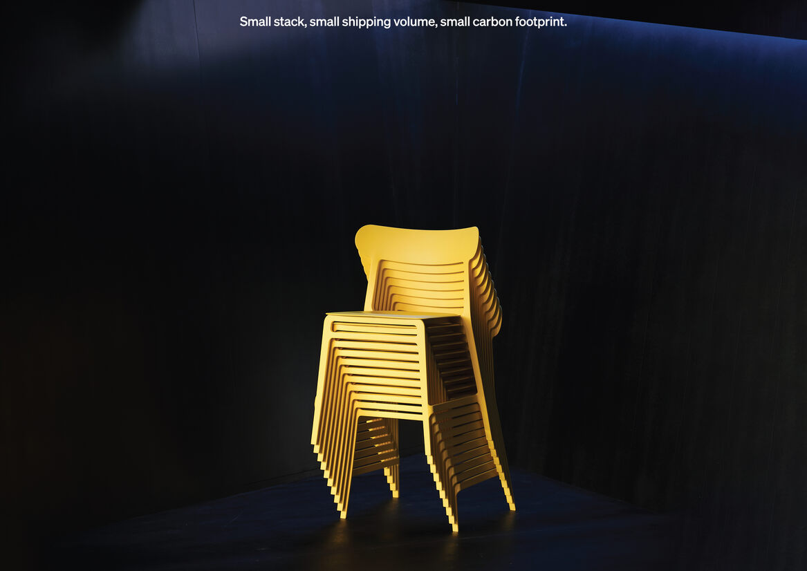 Weighing just 2.6kg, Lightly uses less than half the material of comparable chairs. The structure of Lightly has been fine tuned to only use material that is essential to the performance of the chair, everything else has been removed. Being superlight and easy to move, spaces can be quickly and easily reconfigured for different activities and varying numbers of people.